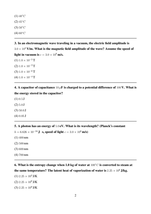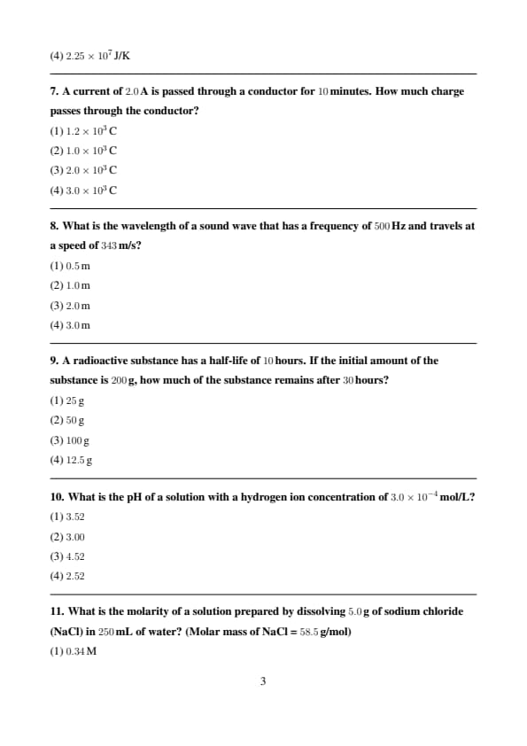 | Physics | 50 | 1 | 50 |
