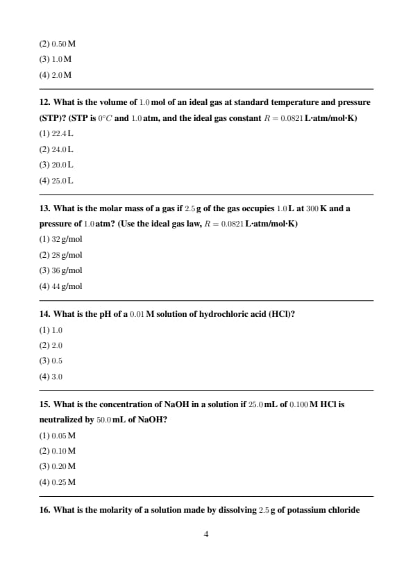 | Chemistry | 50 | 1 | 50 |
