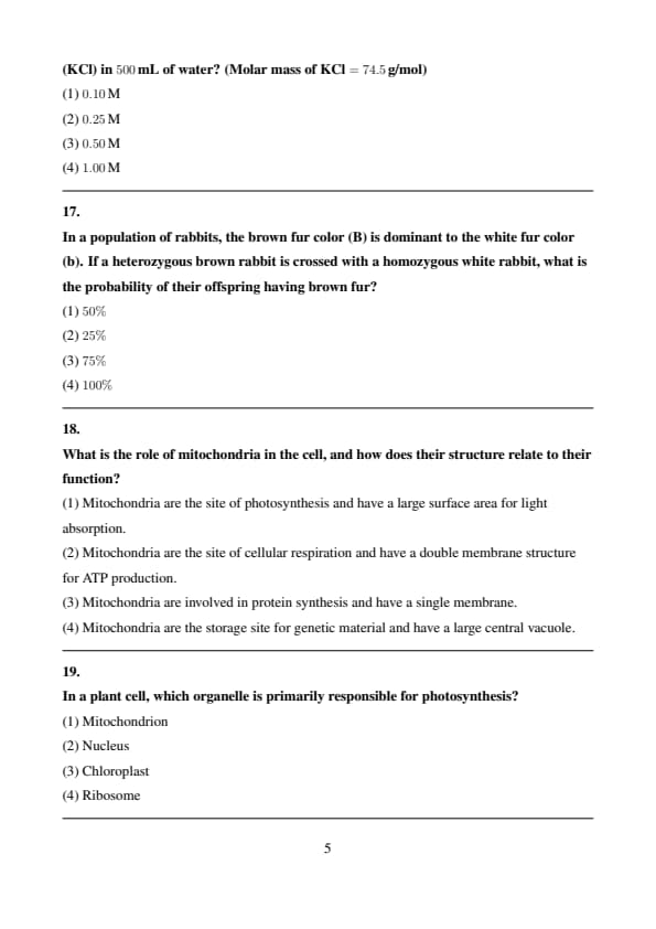 | Biology | 100 | 1 | 100 |
