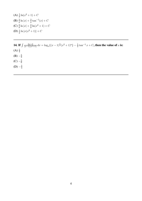 If \( \int \frac{2x + 3}{(x - 1)(x^2 + 1)} \, dx = \log_x \{(x - 1)^{\frac{5}{2}}(x^2 + 1)^a\} - \frac{1}{2} \tan^{-1}x + C \), then the value of \( a \) is: