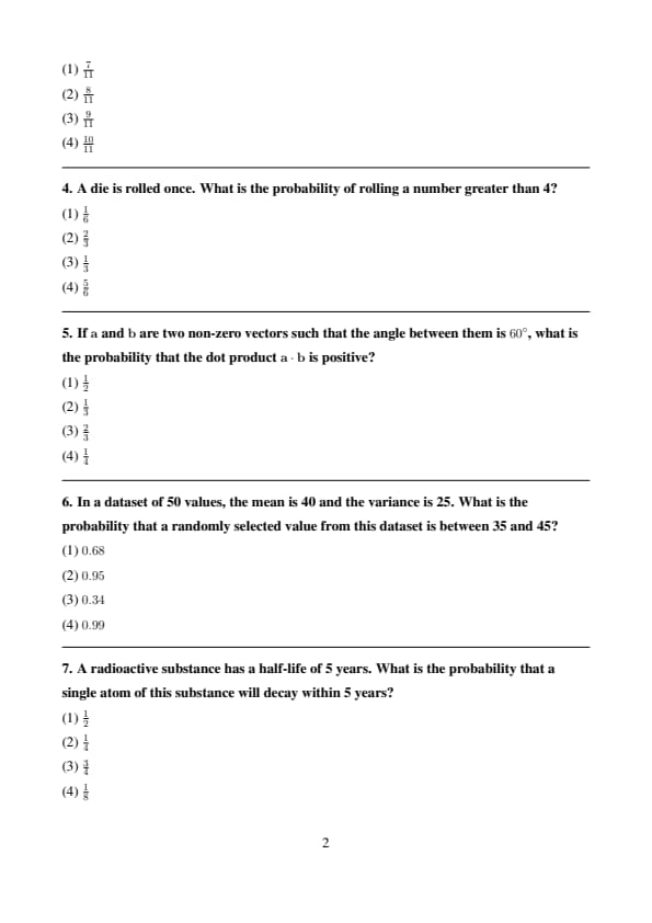 A radioactive substance has a half-life of 5 years. What is the probability that a single atom of this substance will decay within 5 years?