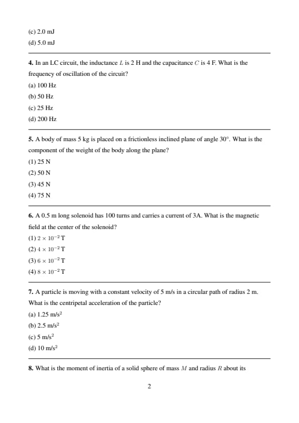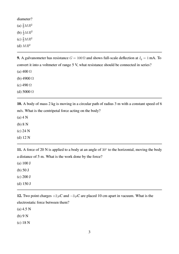| Physics | Moderate to Difficult | Conceptual and Numerical based questions (e.g., Current Electricity, Modern Physics) |