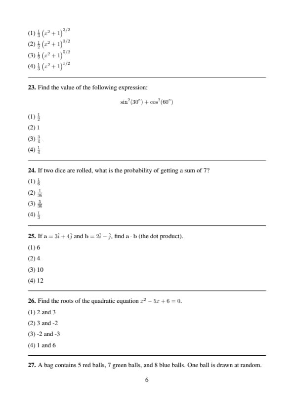 | Mathematics | Moderate to Difficult | Lengthy and heavy Calculation based (e.g., Calculus, Vectors, Probability) |