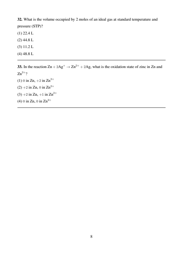 In the reaction \( Zn + 2Ag^+ \rightarrow Zn^{2+} + 2Ag \), what is the oxidation state of zinc in \( Zn \) and \( Zn^{2+} \)?