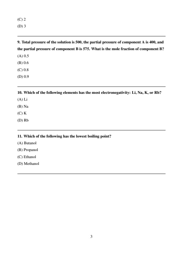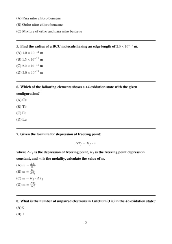 | Chemistry | Easy to Moderate | Fact-based and Some Organic Mechanism questions (e.g., Thermodynamics, Coordination Compounds) |
