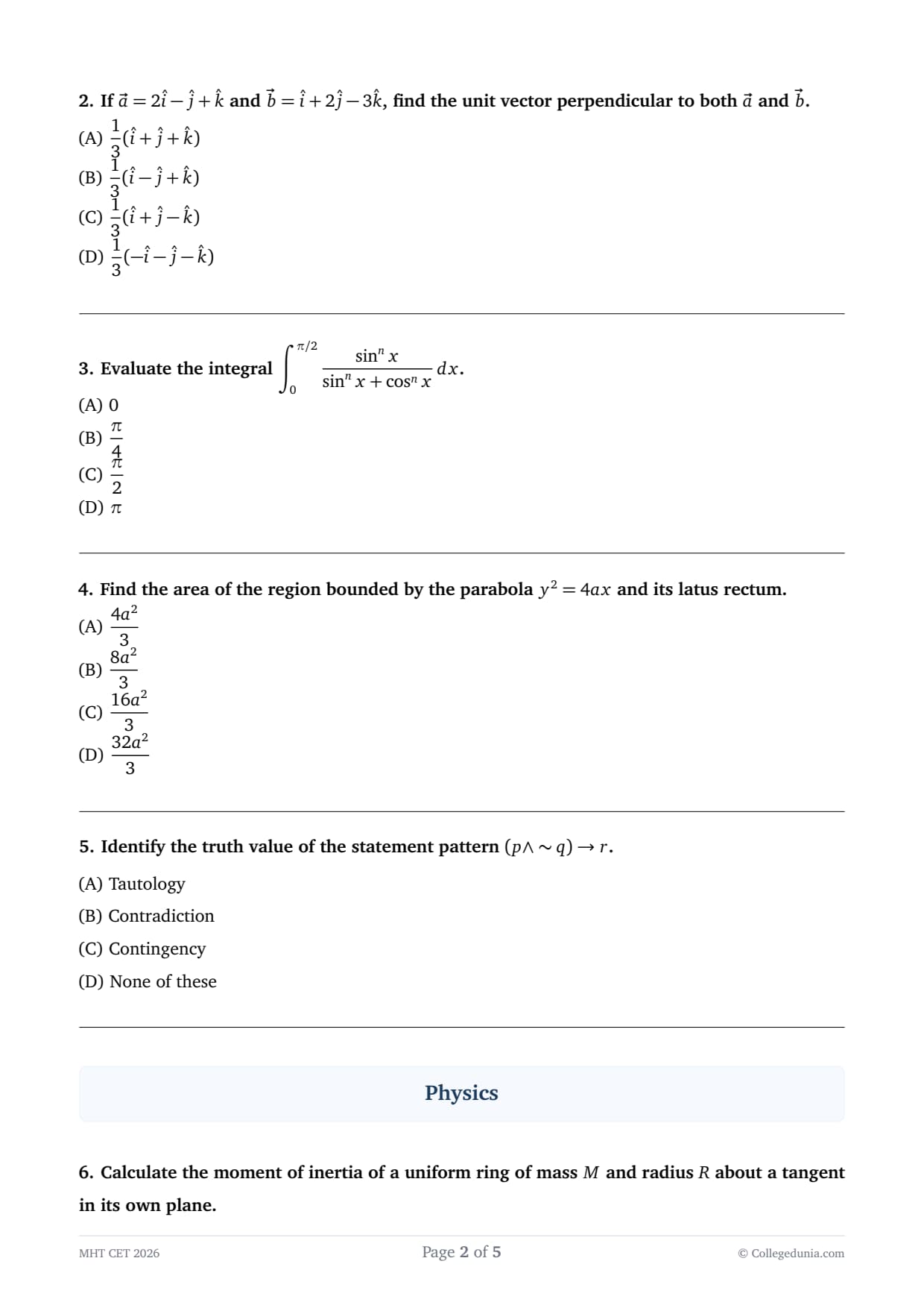 MHT CET 2026 April 14 Shift 2 PCM Question Paper is available for download here. Maharashtra State CET Cell conducted MHT CET 2026 PCM Exam on April 14 in Shift 2 from 9 AM to 12 PM in CBT mode.