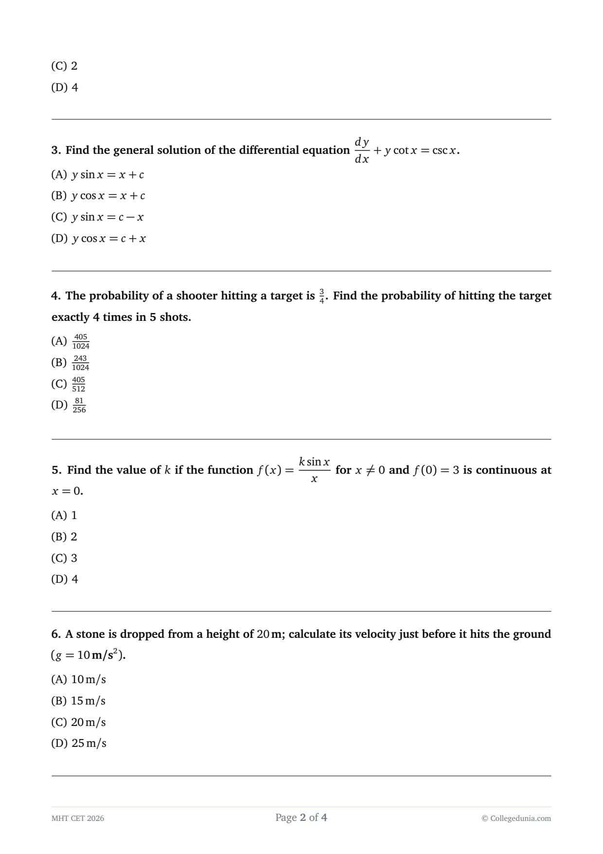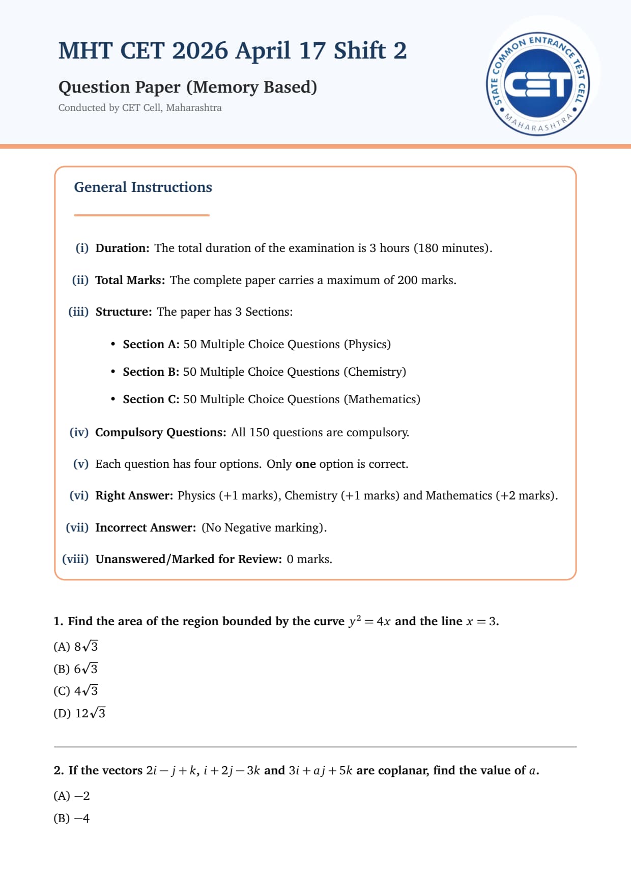 | MHT CET 2026 April 17 Shift 2 Question Paper | Download PDF | Check Solution |