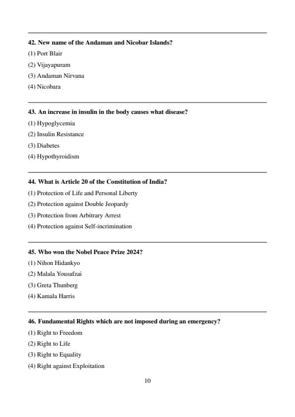 Fundamental Rights which are not imposed during an emergency?