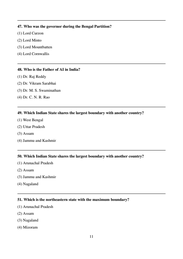 Who was the governor during the Bengal Partition?