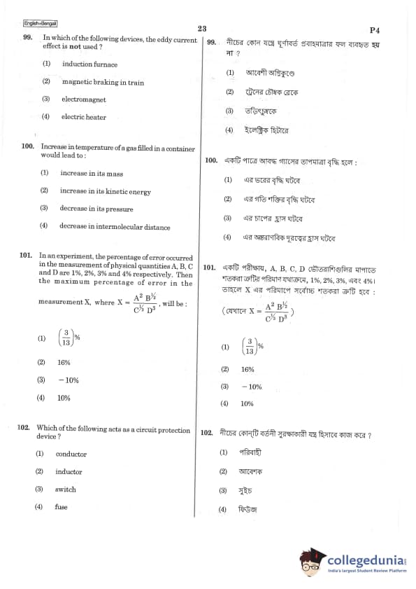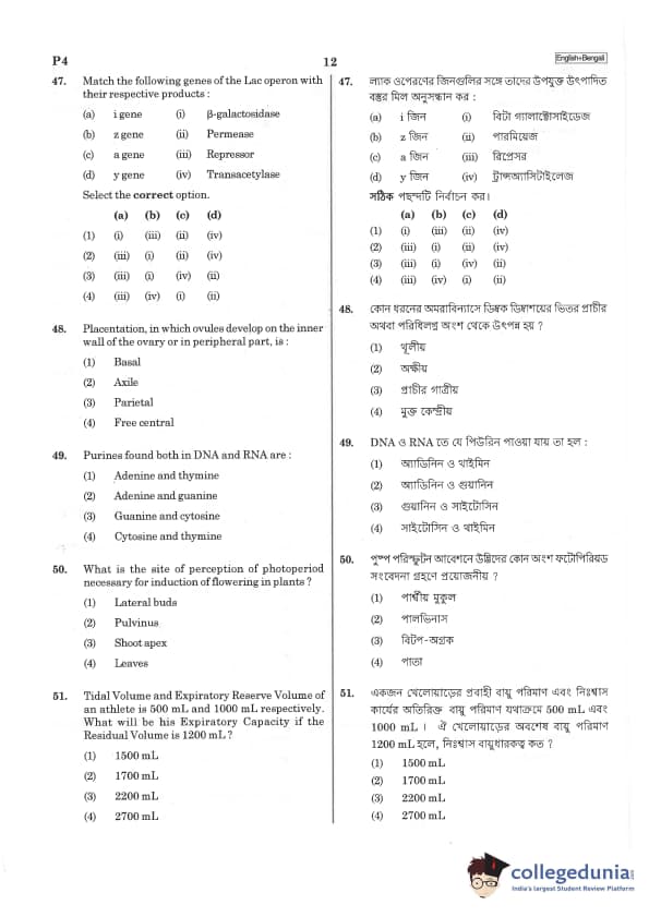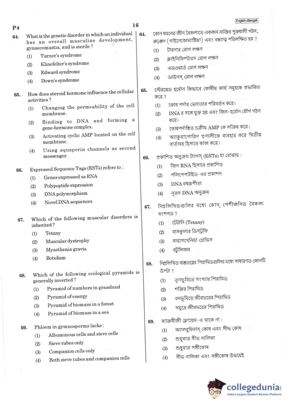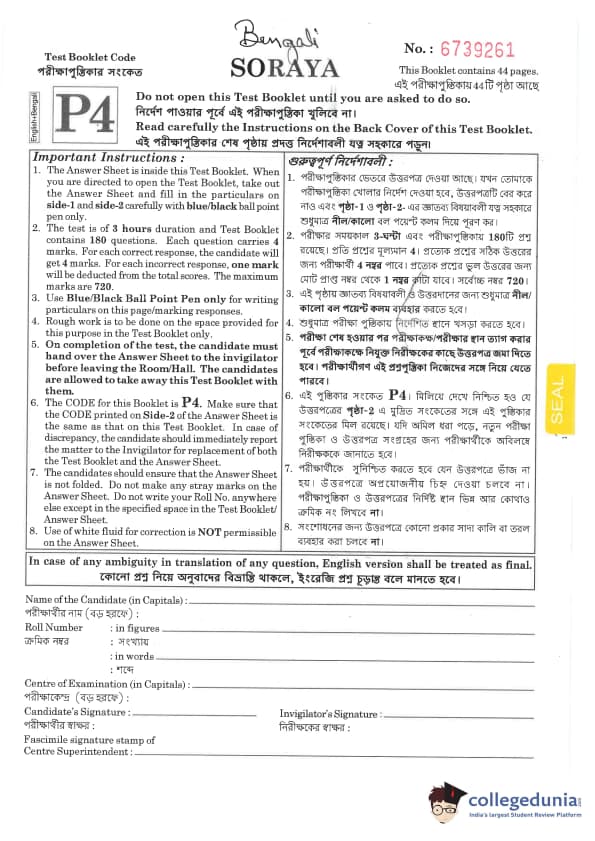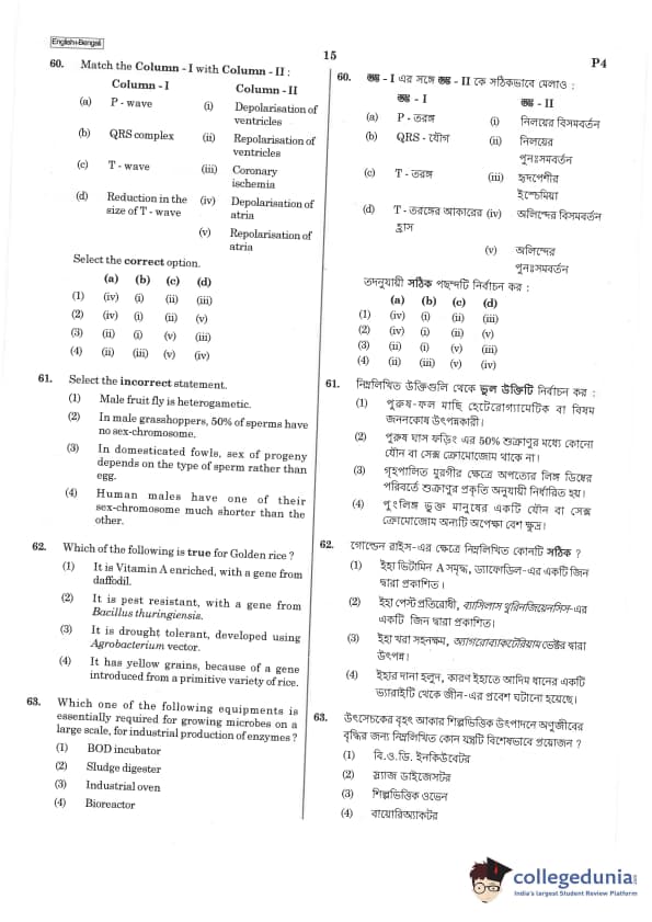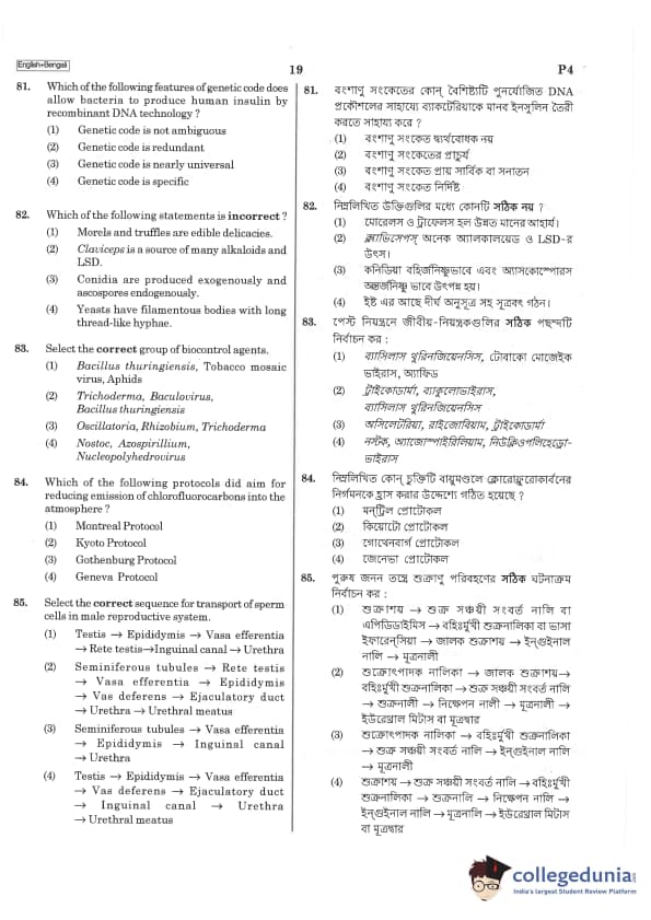 | NEET 2019 Bengali P4 Question Paper PDF | NEET 2019 Bengali P4 Answer Key PDF |