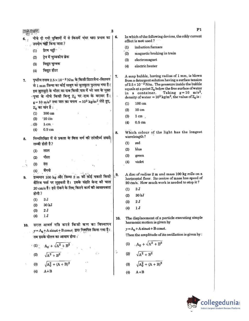 NEET 2019 Question Paper with Answer Key PDF in Hindi