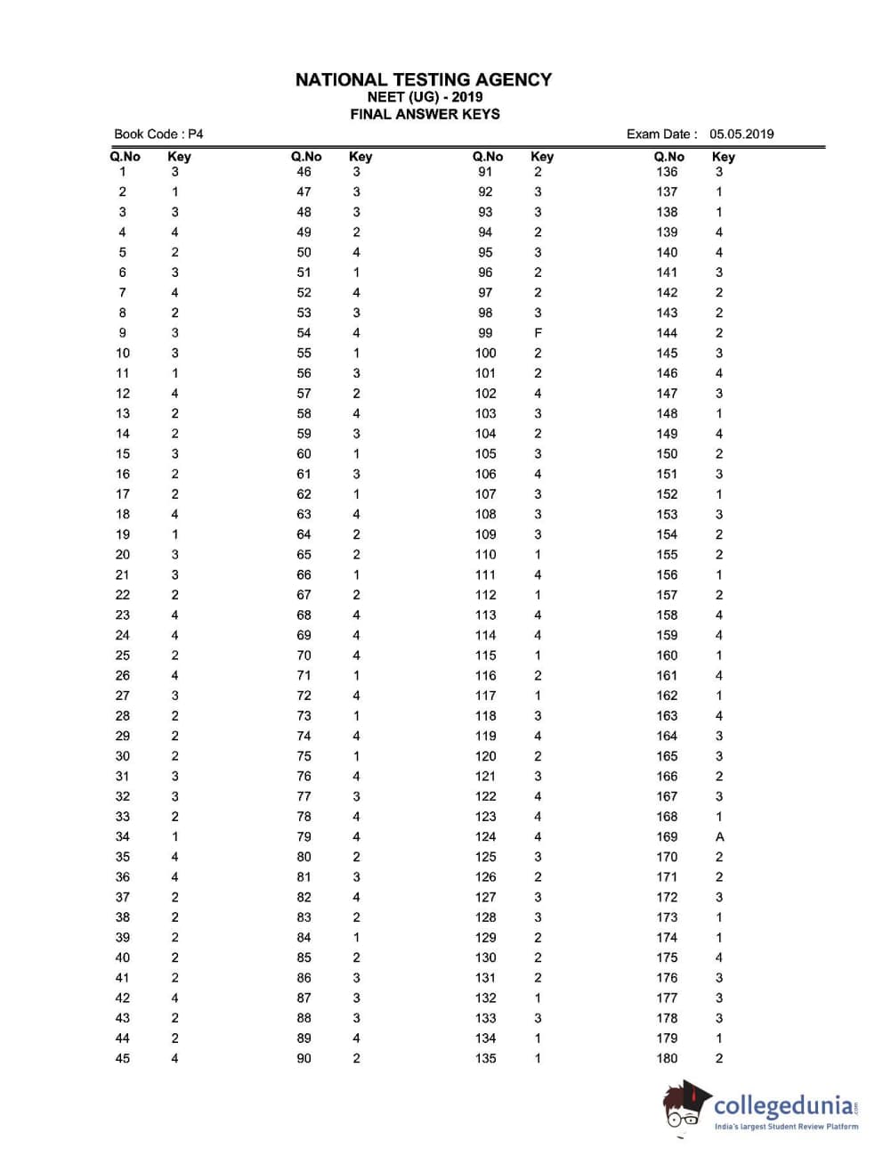 | NEET 2019 Question Paper P1 PDF Hindi | NEET 2019 Answer Key P1 PDF Hindi |