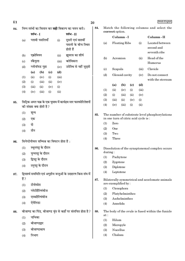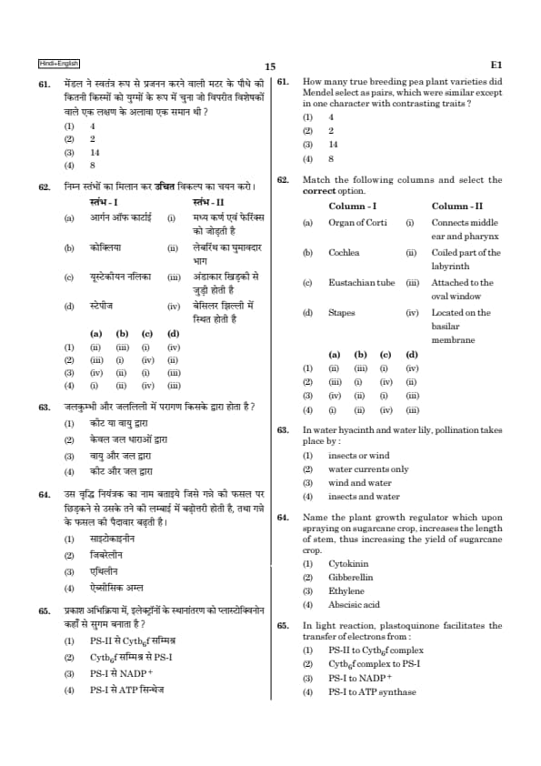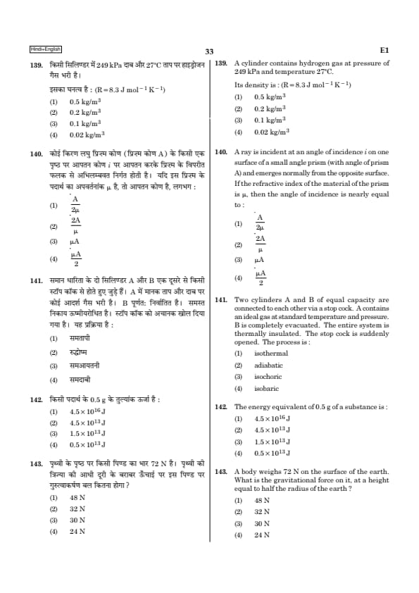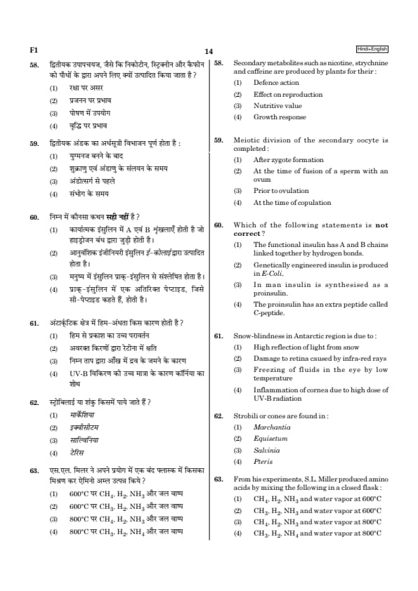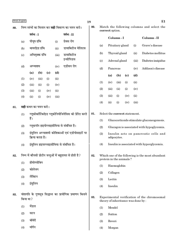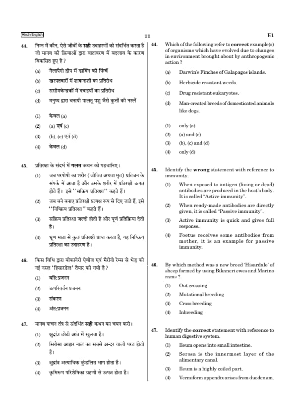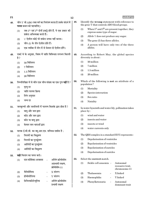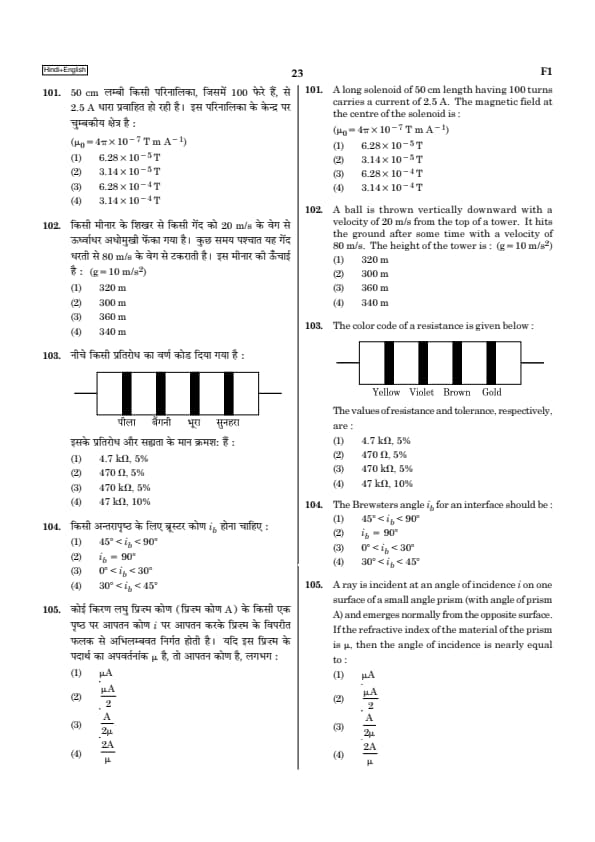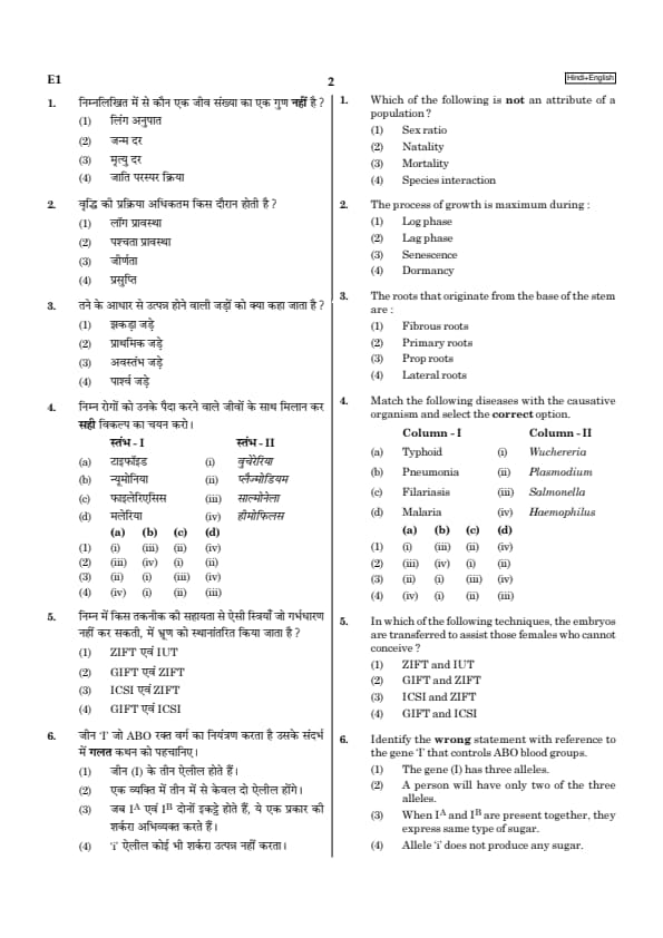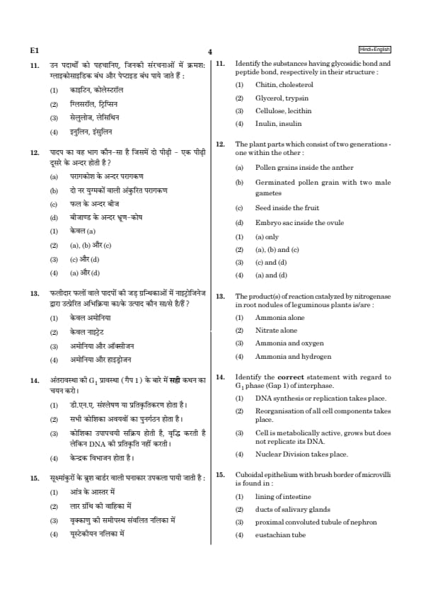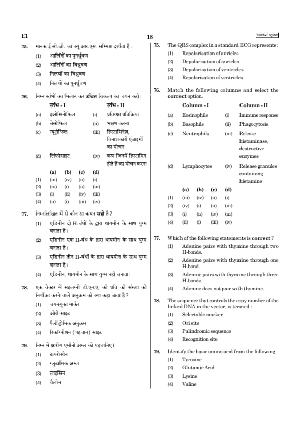 | NEET Paper Code E1,F1,G1,H1 | E1, F1, G1, H1 |