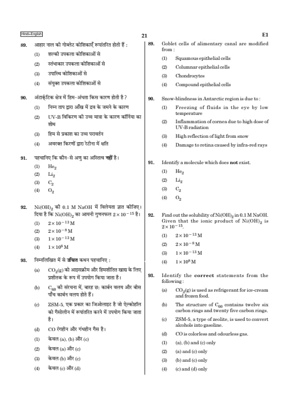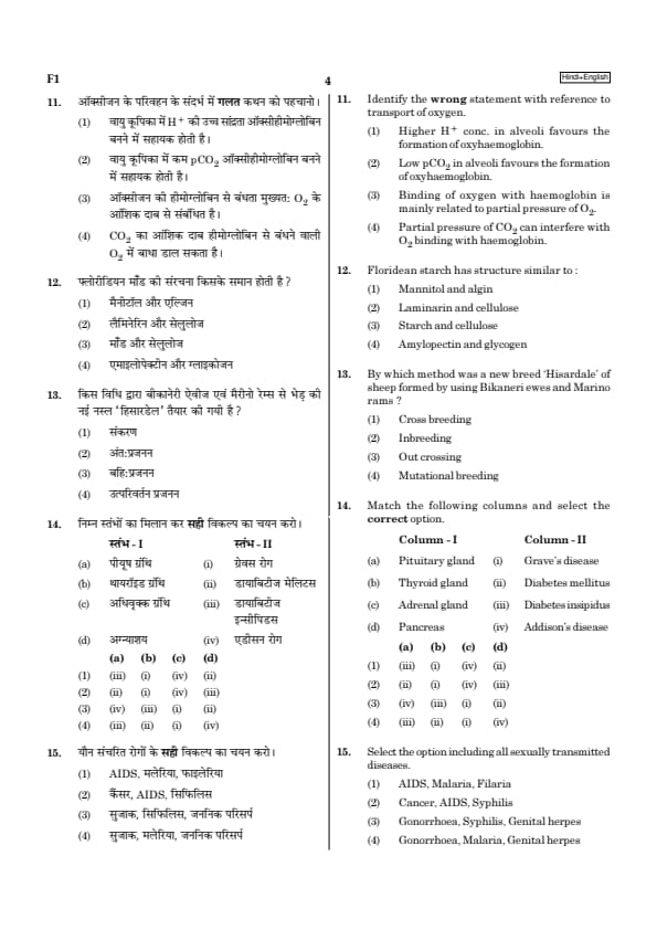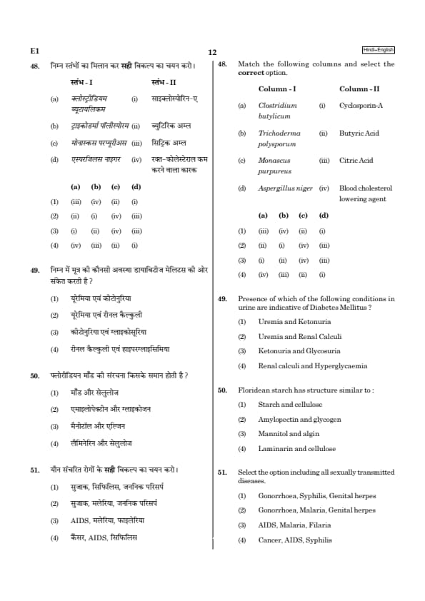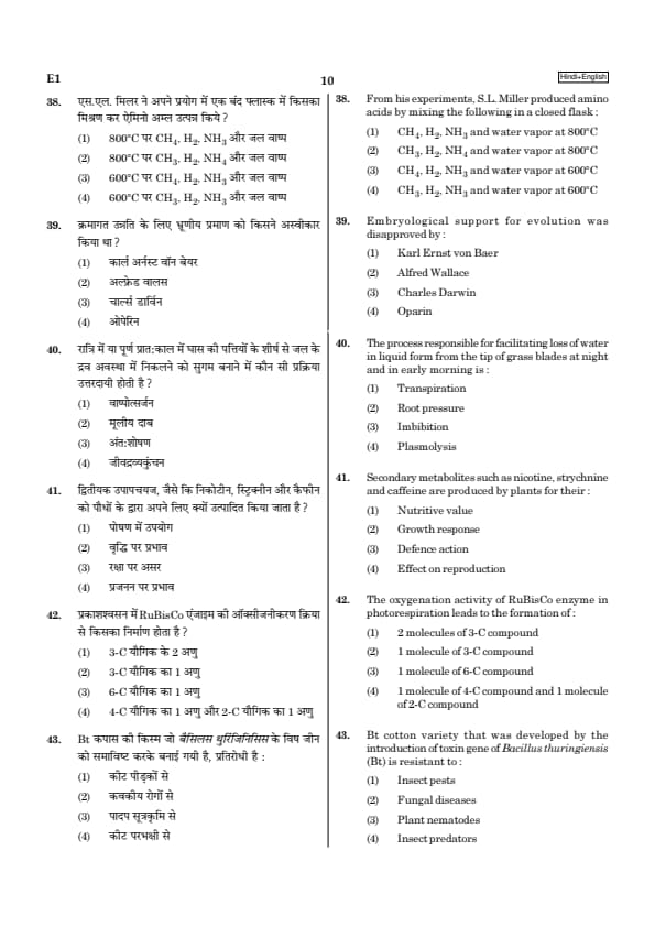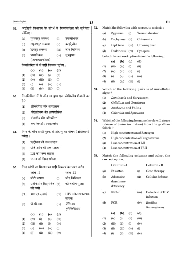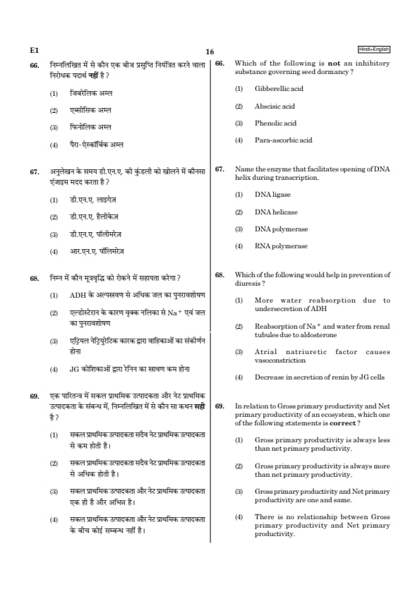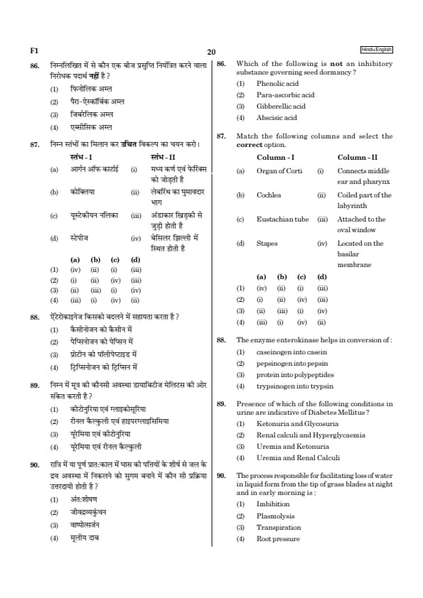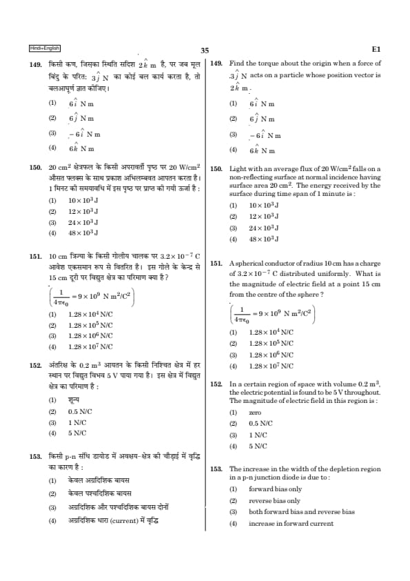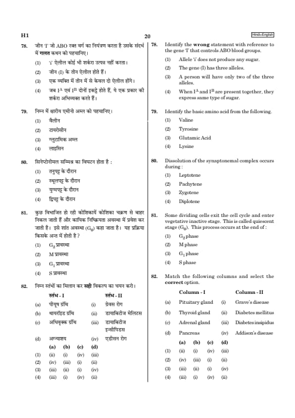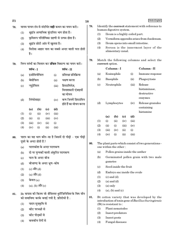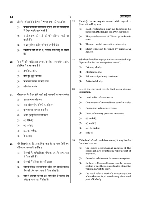 | NEET Paper Code E1,F1,G1,H1 | E1, F1, G1, H1 |