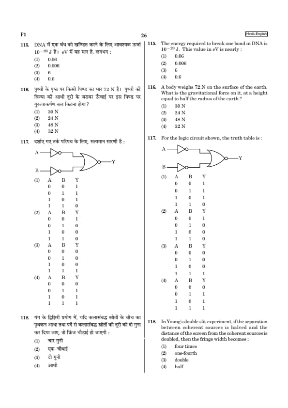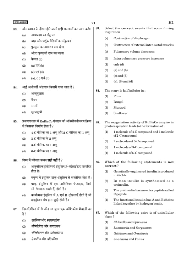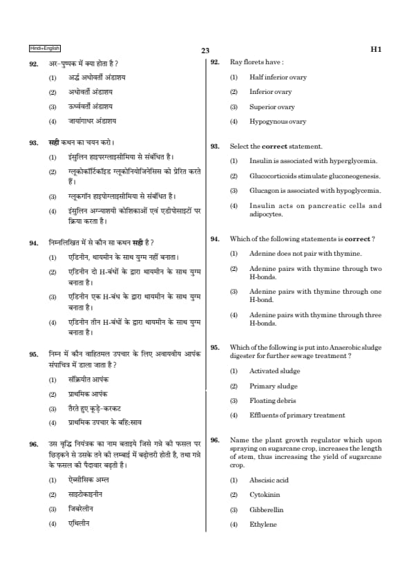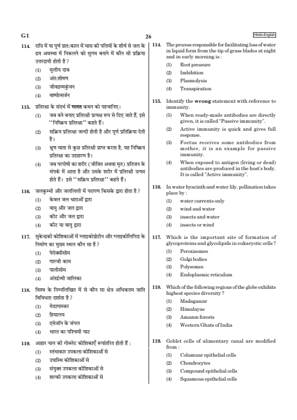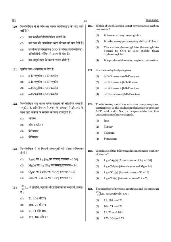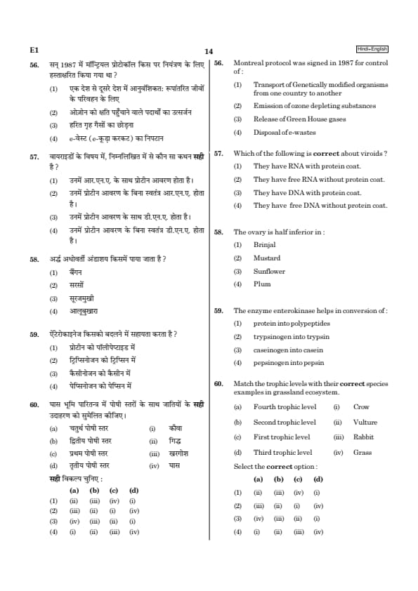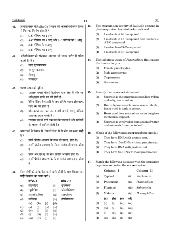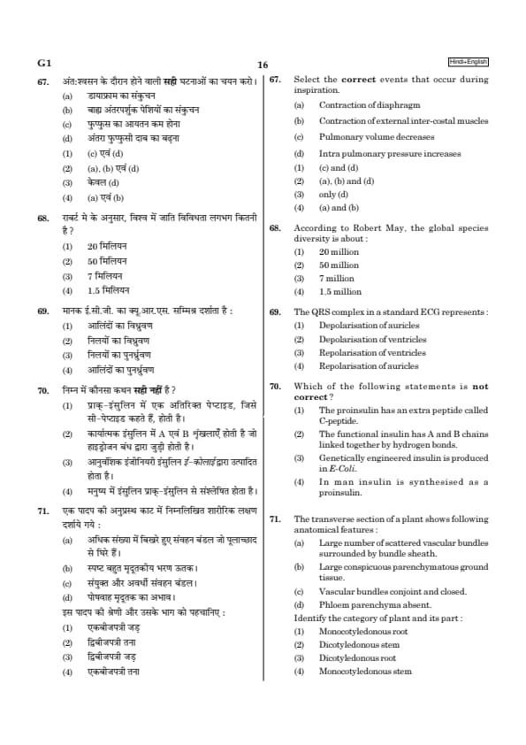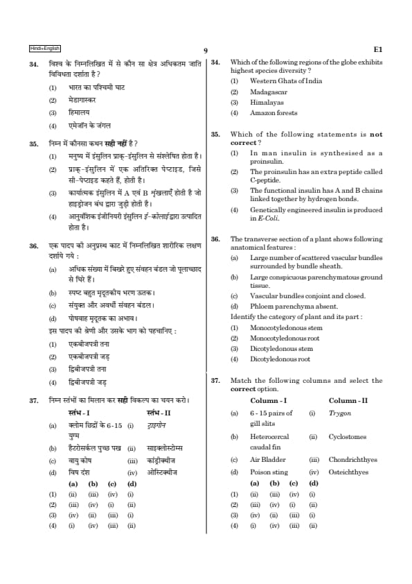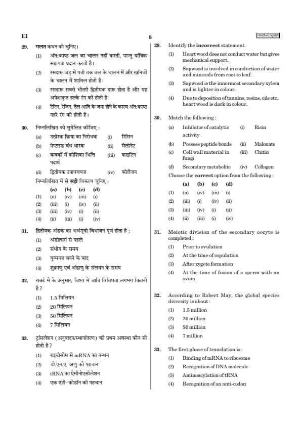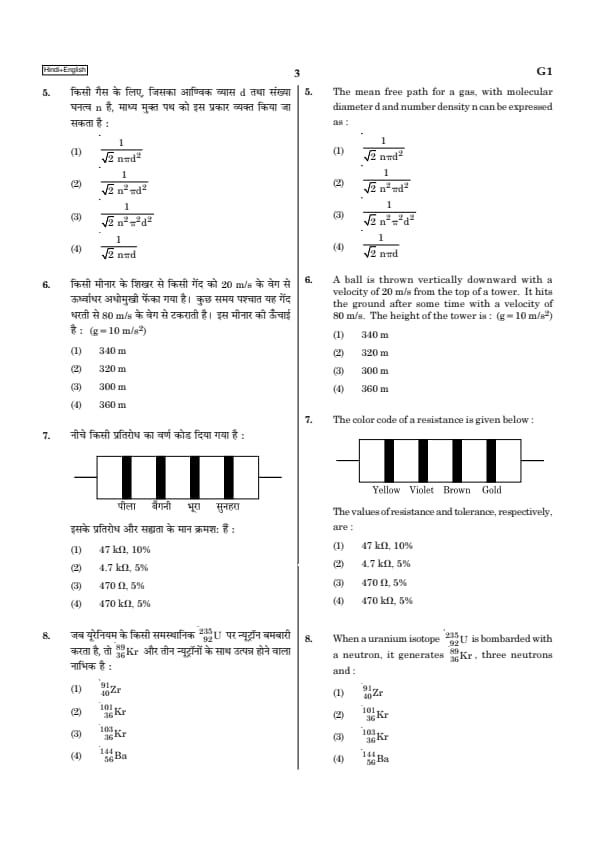 | NEET Paper Code E1,F1,G1,H1 | E1, F1, G1, H1 |