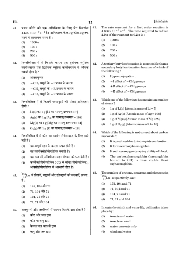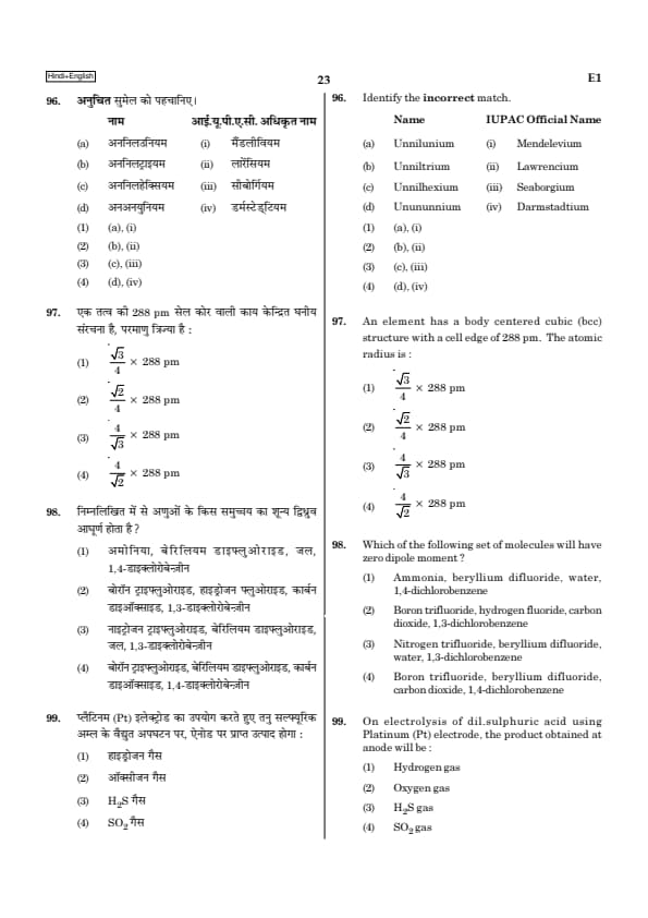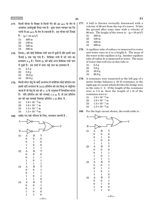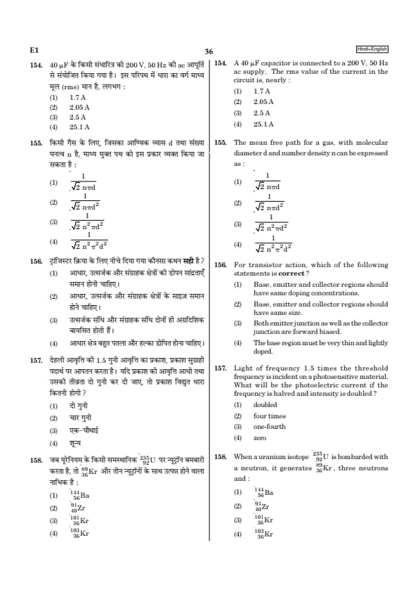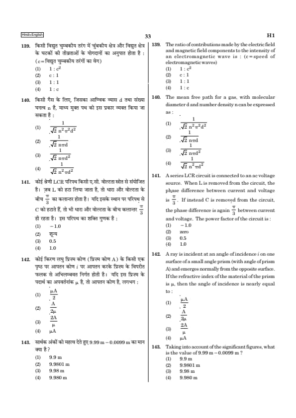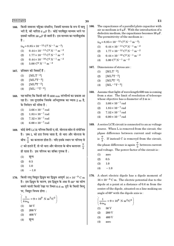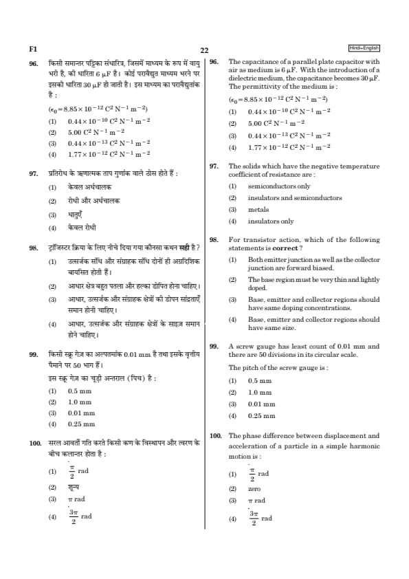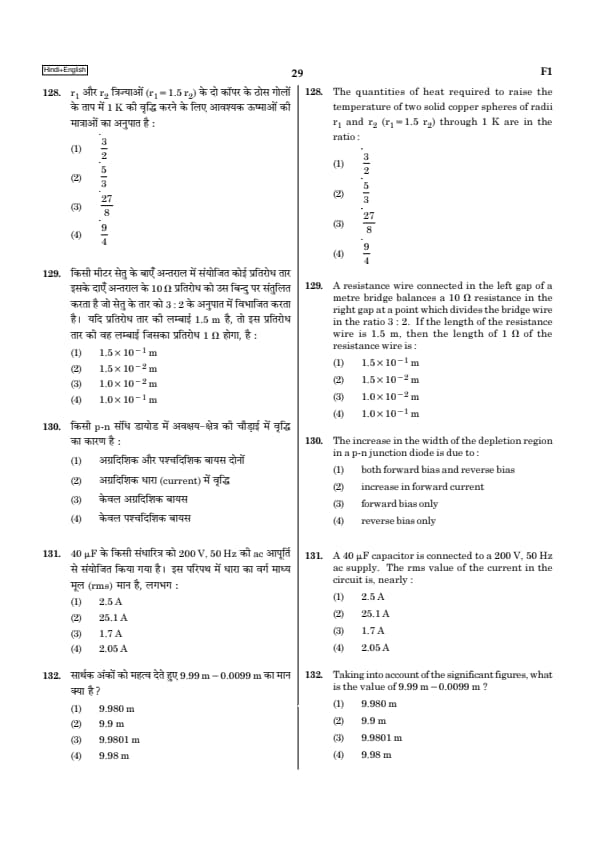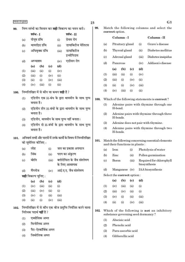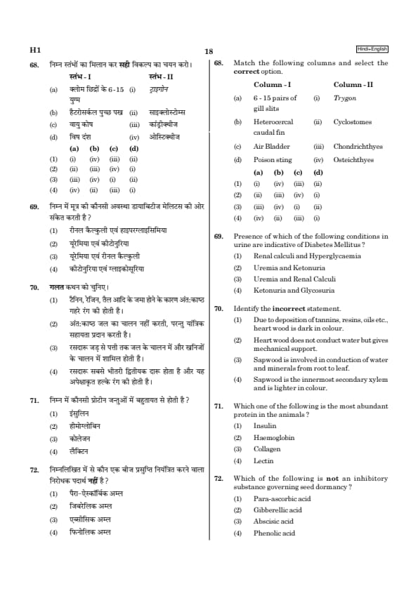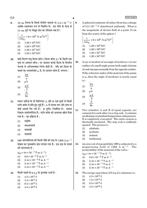 | NEET Paper Code E1,F1,G1,H1 | E1, F1, G1, H1 |