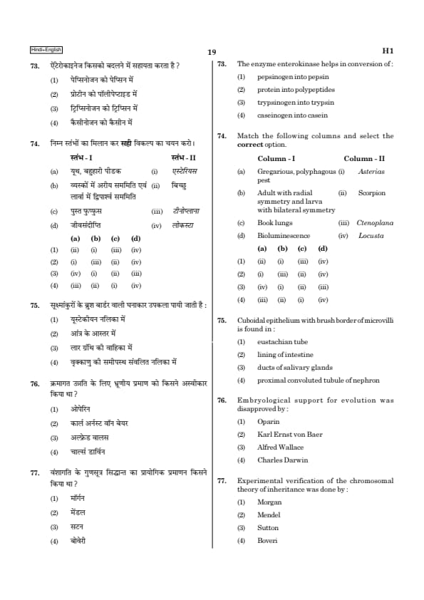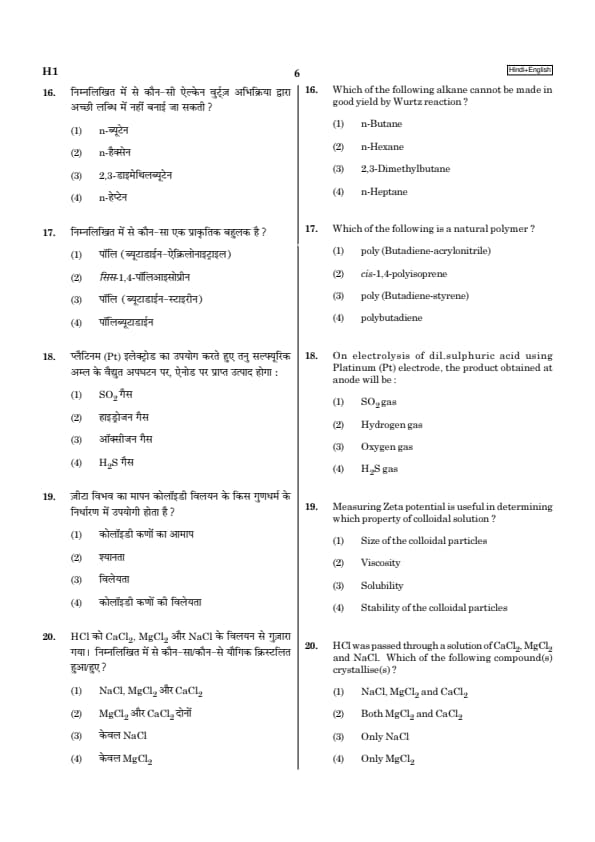 No changes were made to the syllabus or the exam pattern of the paper but the exam was conducted in two shifts (September 13 and October 14, 2020) to facilitate the candidates who could not attend the first shift due to the COVID pandemic. NEET 2020 Question Paper with Answer Key PDF in Hindi for E1 to H1 Paper Code is given below which will help in preparing for the upcoming examination. Check NEET Cutoff