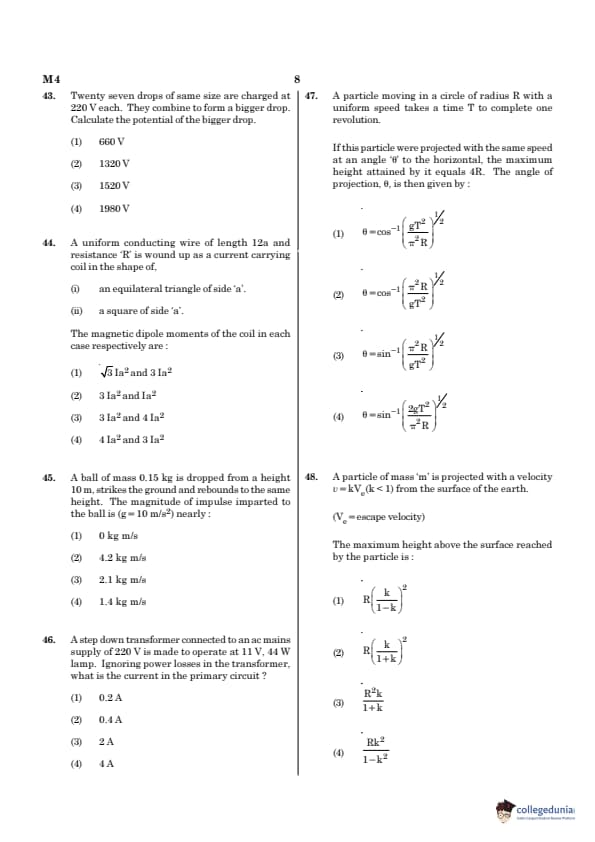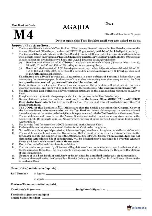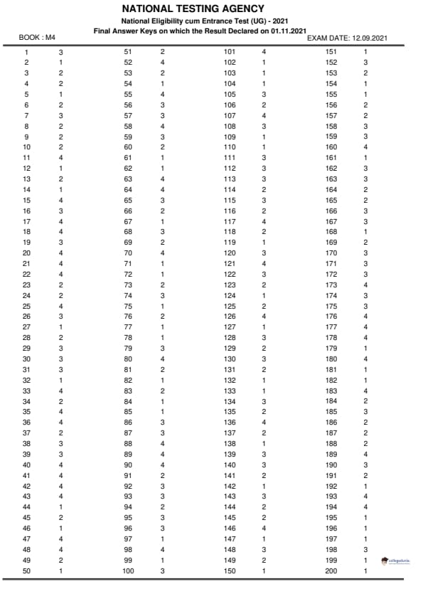 Candidates searching for NEET 2021 Question Paper for Paper code M4, can click on the following links to download the paper and its answer key.