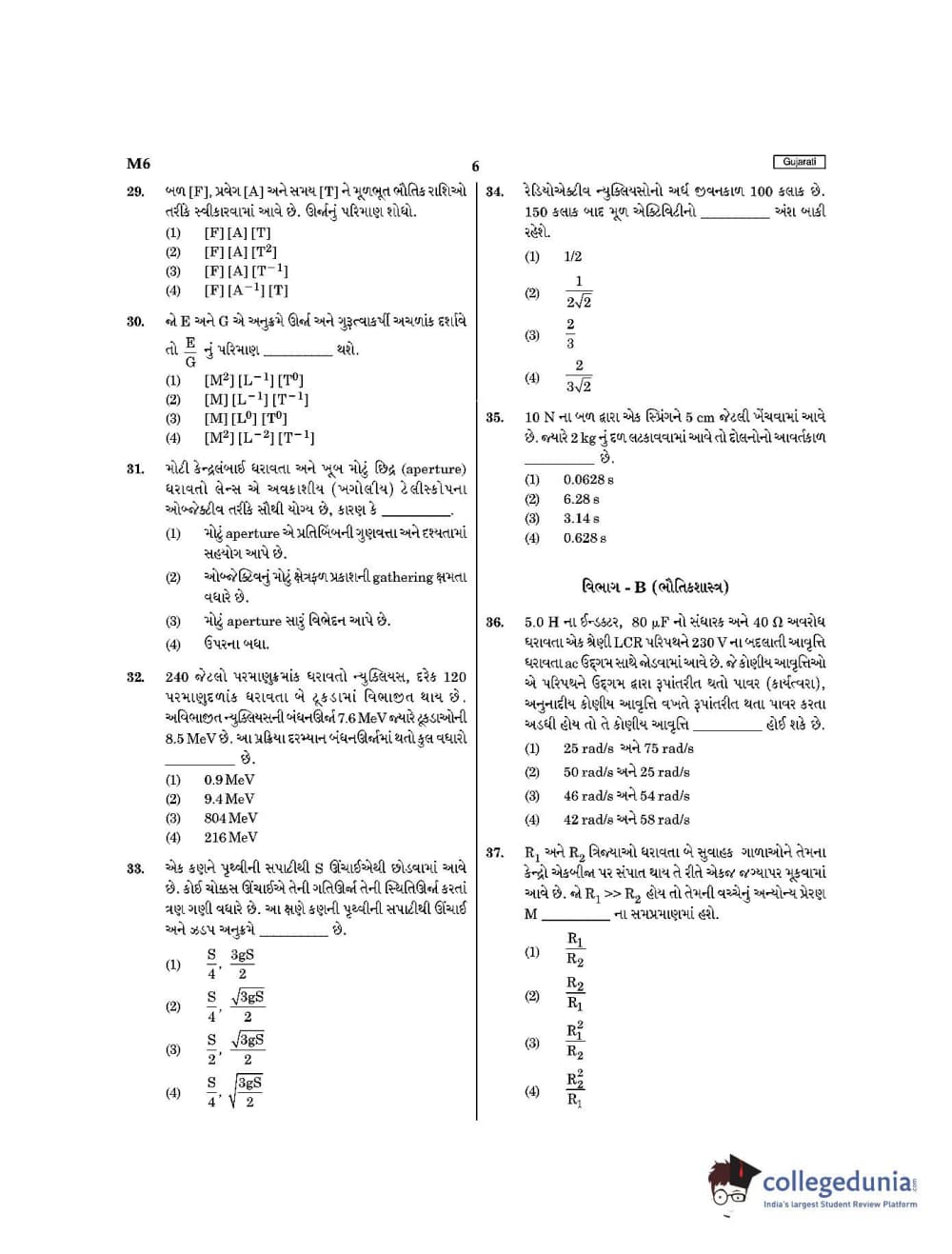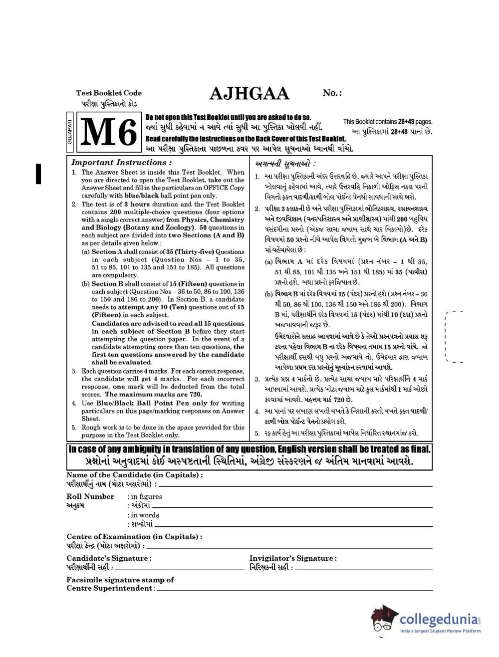 | NEET 2021 Question Paper M6 PDF Gujarati | NEET 2021 Answer Key M6 PDF Gujarati |
