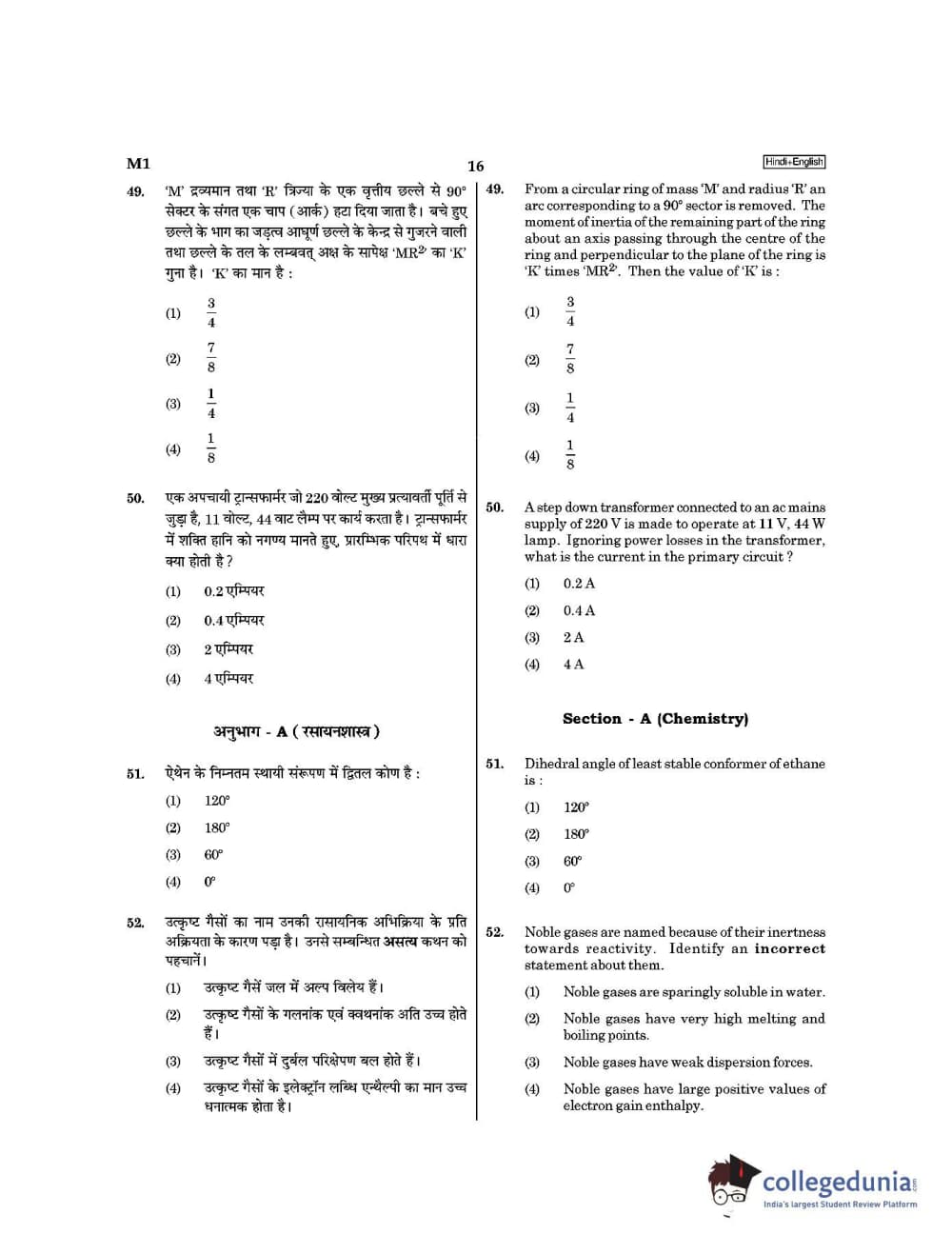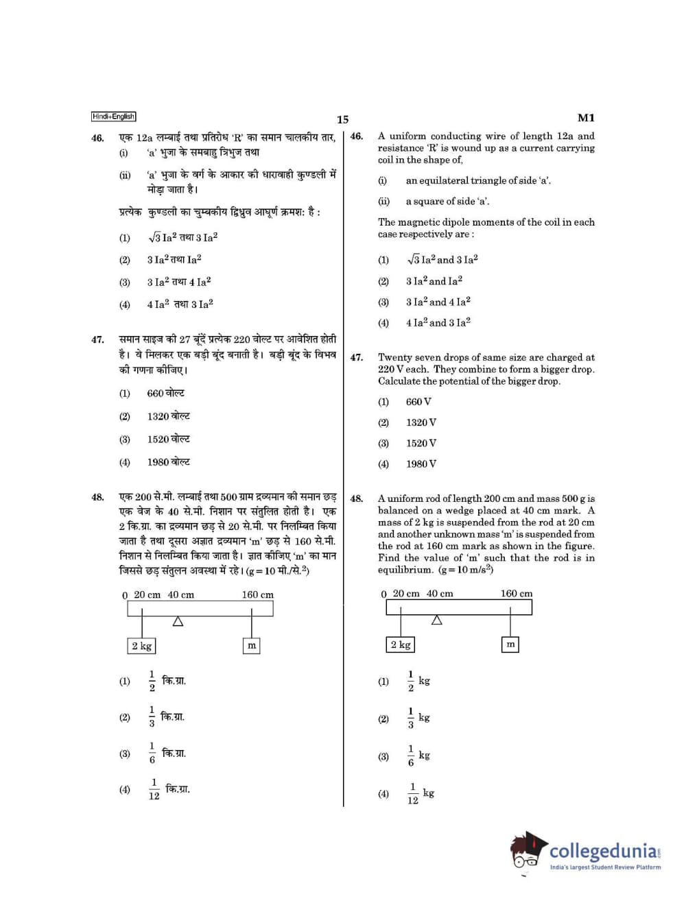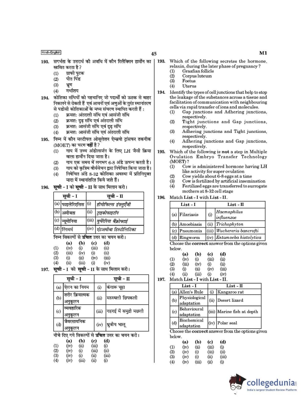 NEET 2021 was conducted on September 12,2 2021 and was attempted by 15.44 Lakh students. Candidates planning to appear for the upcoming NEET exam can download NEET 2021 Question paper in Hindi for Paper Code M1 from the links given below.