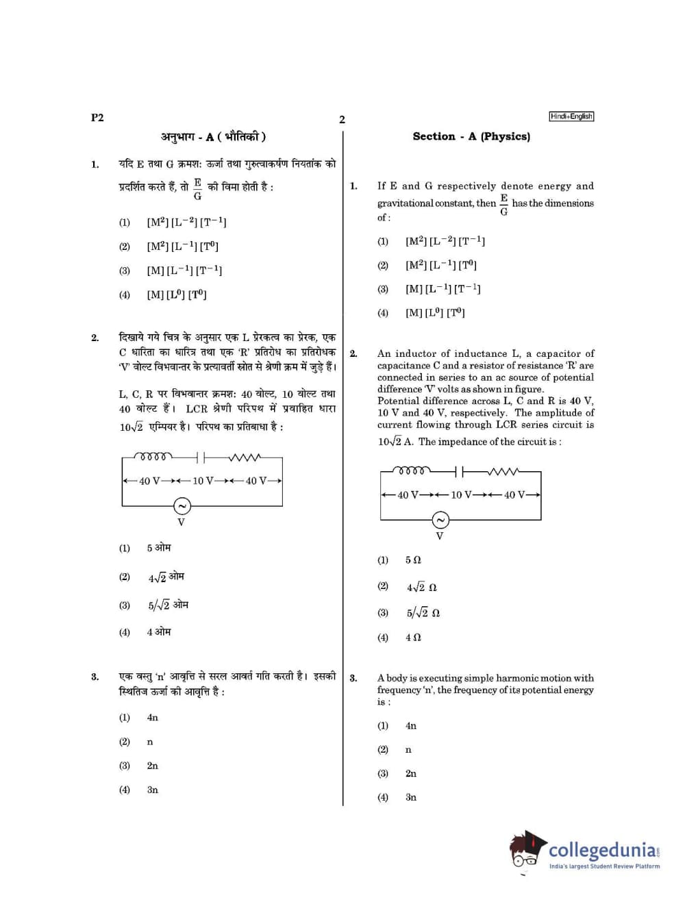 Previous year question papers of other UG entrance examinations can be downloaded from below: