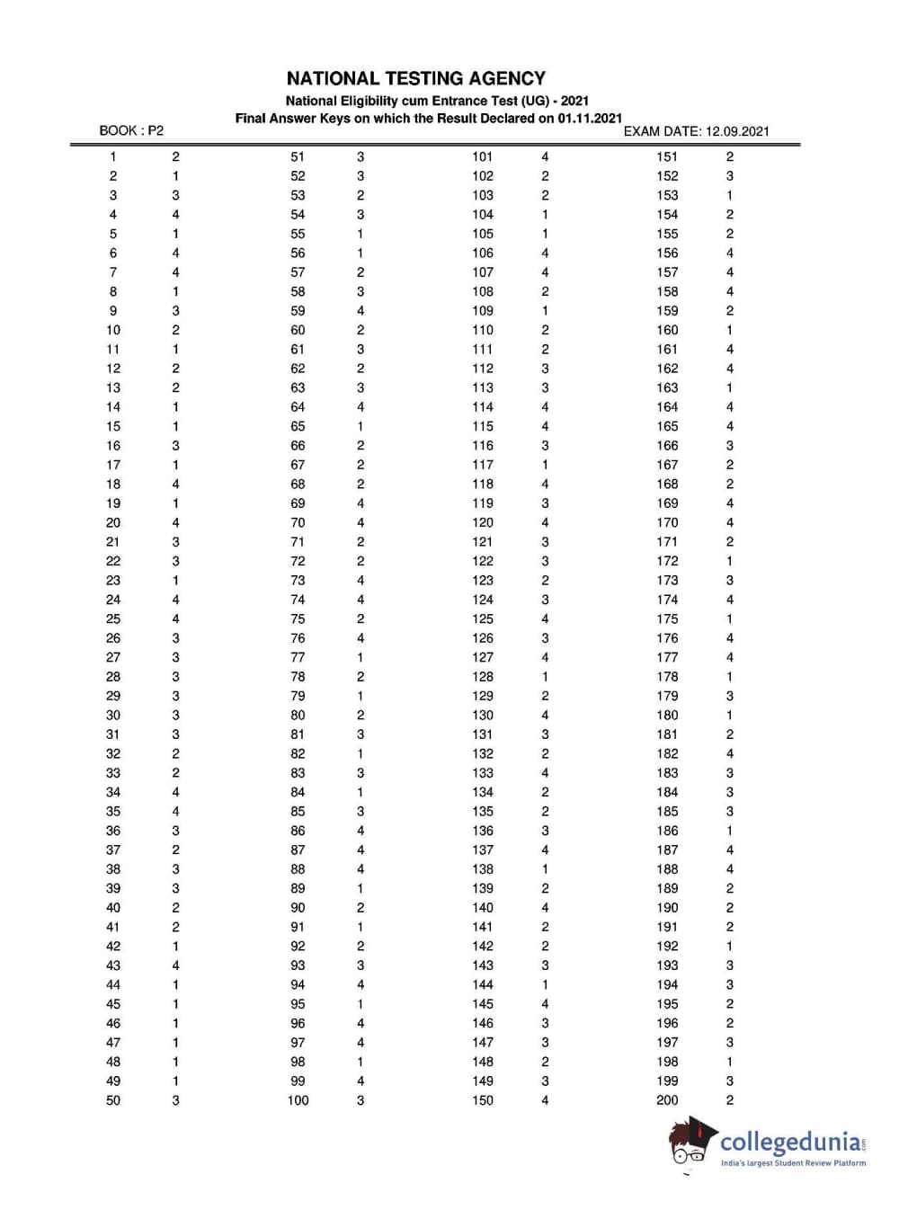 | NEET 2021 Question Paper P2 PDF Hindi | NEET 2021 Answer Key P2 PDF Hindi |