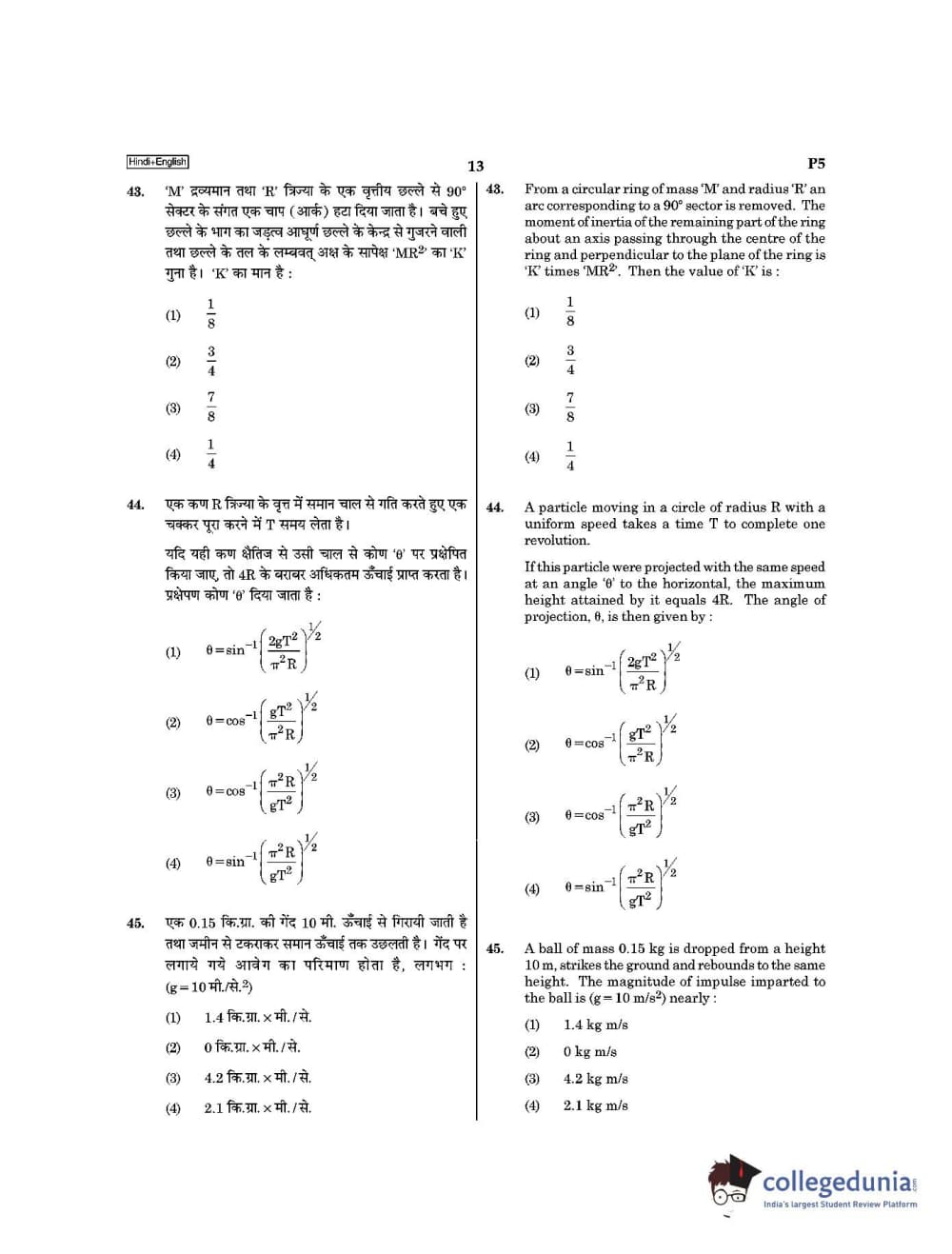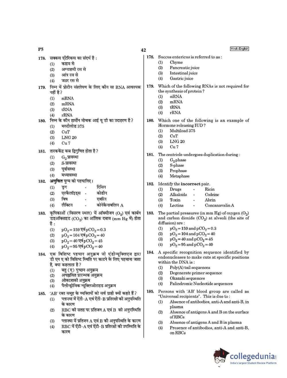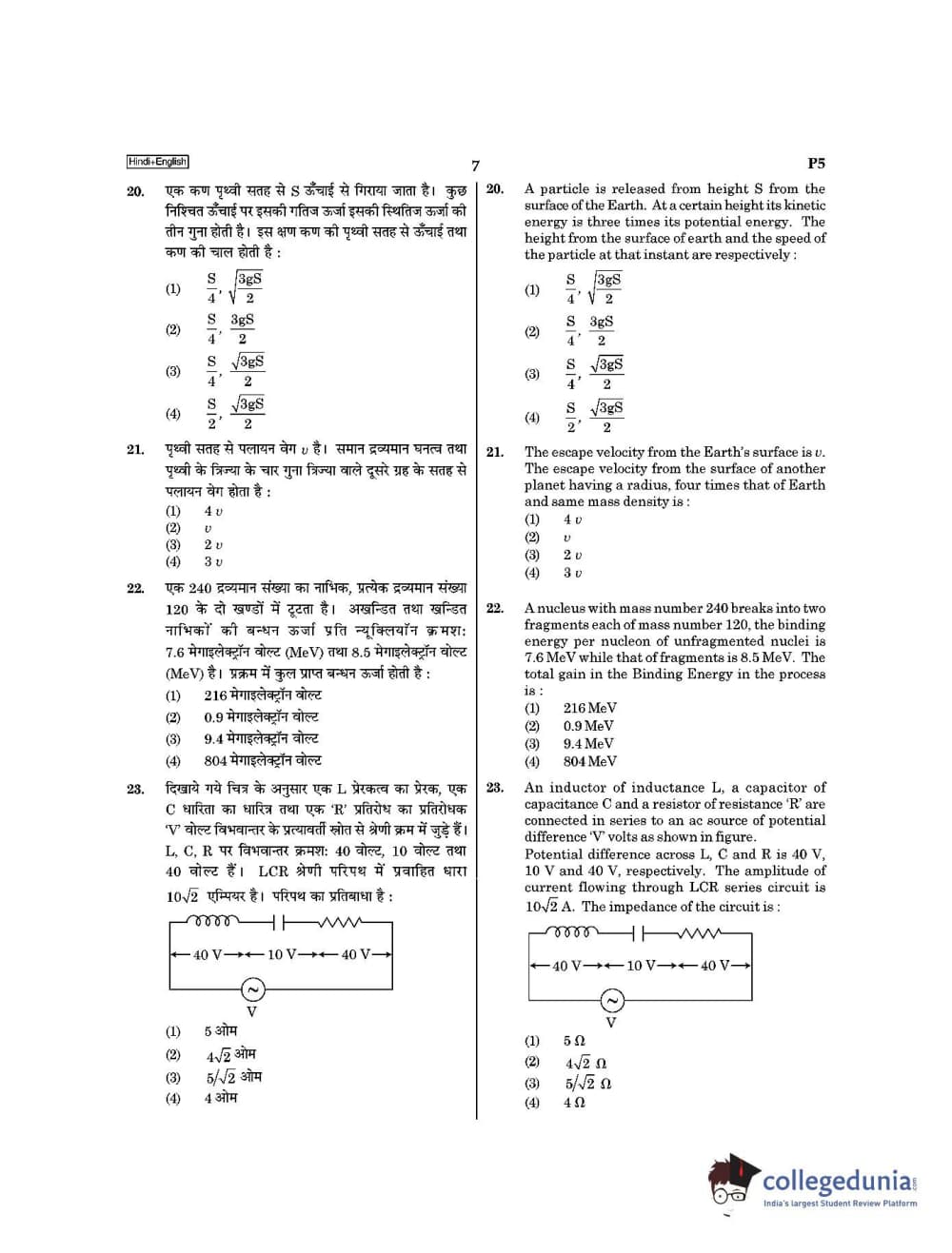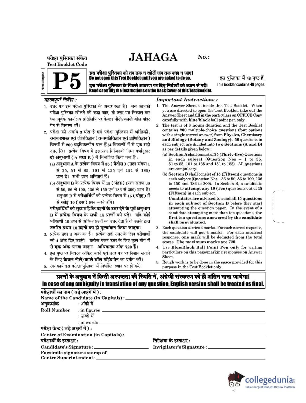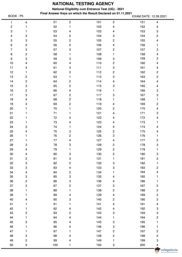 | NEET 2021 Question Paper P5 PDF Hindi | NEET 2021 Answer Key P5 PDF Hindi |