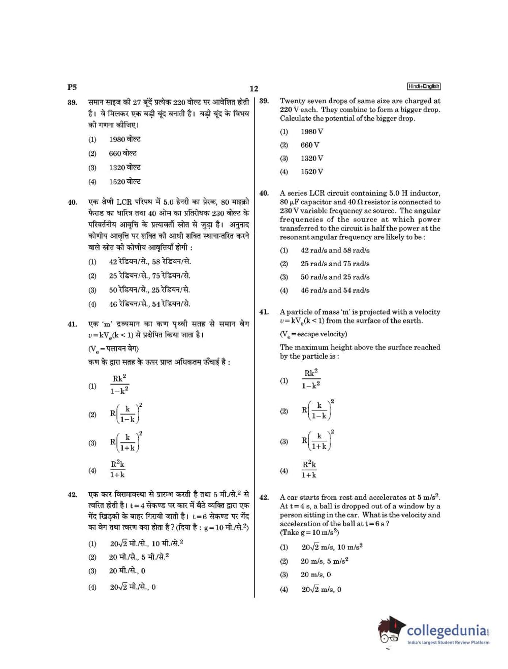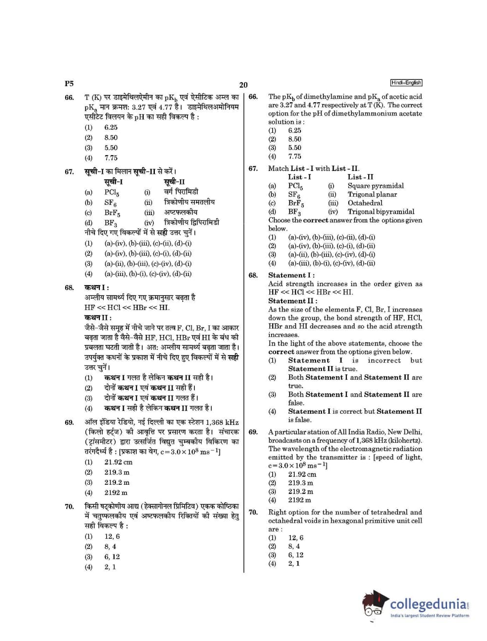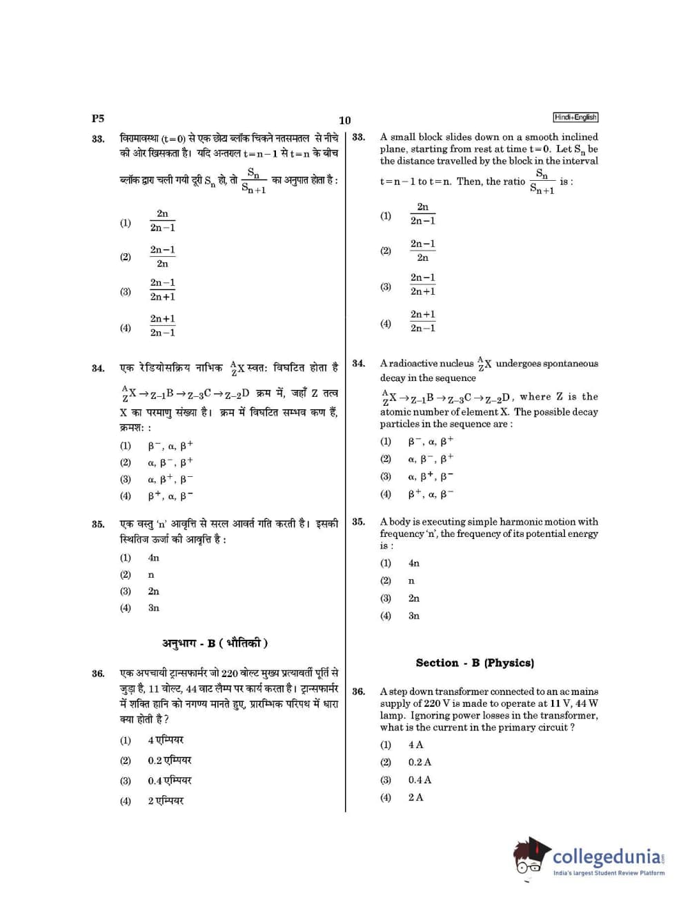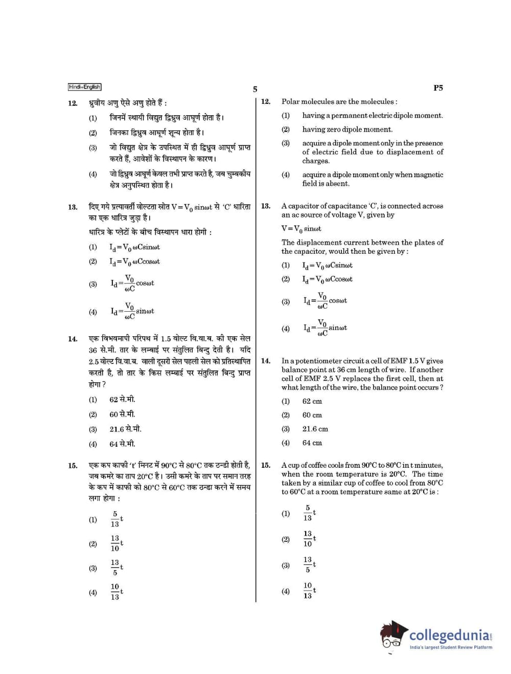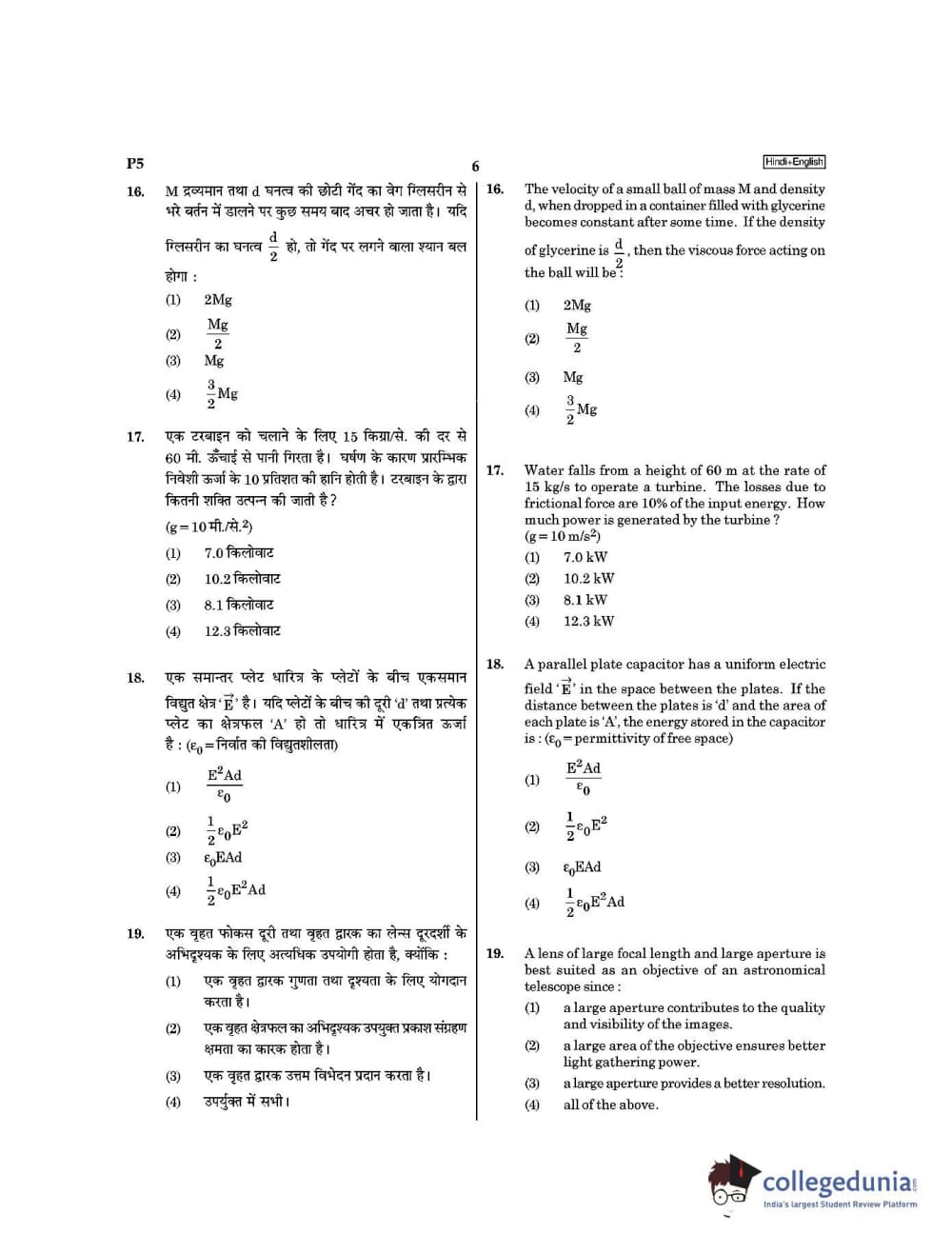 | NEET 2021 Question Paper P5 PDF Hindi | NEET 2021 Answer Key P5 PDF Hindi |
