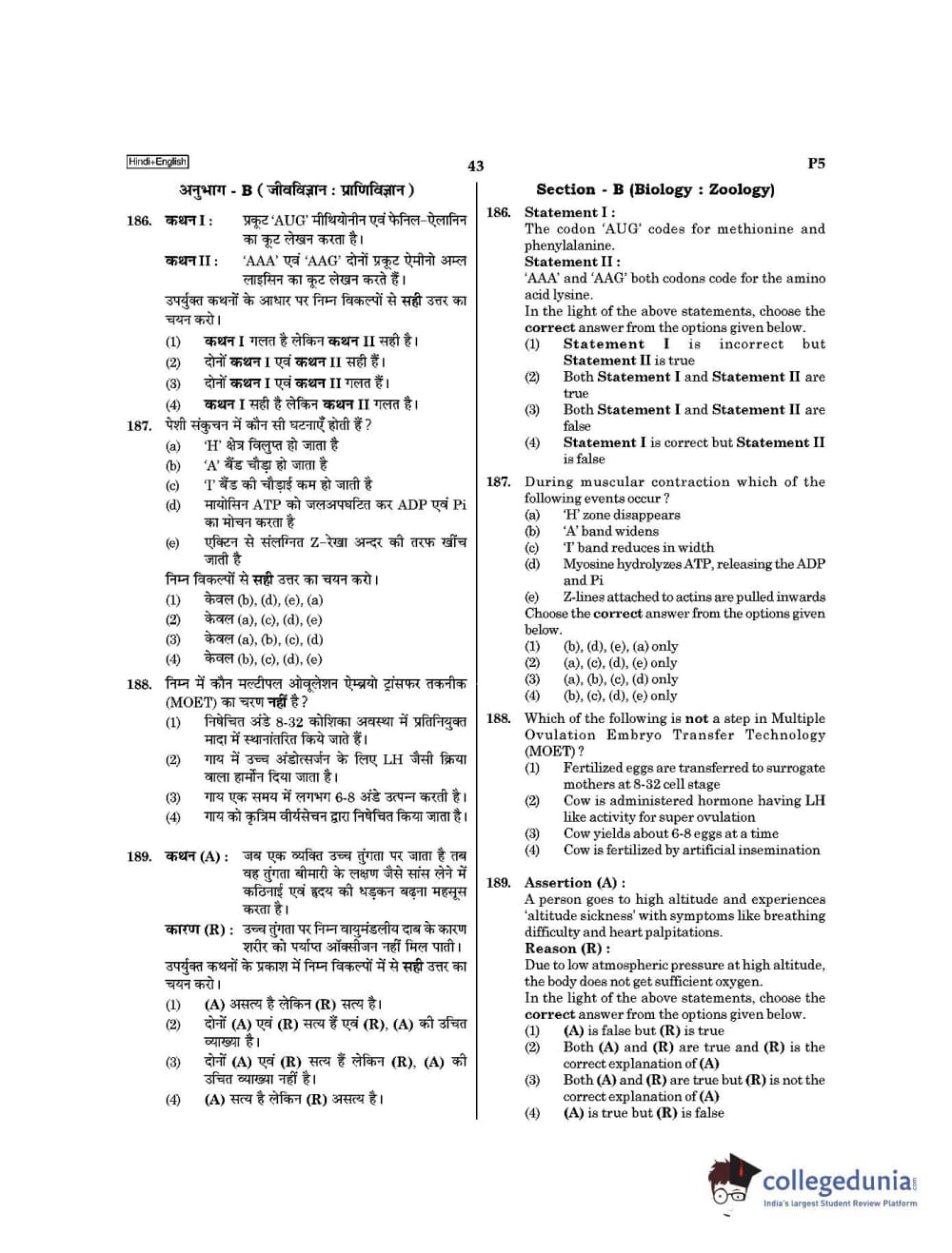 - Human Physiology and Genetics had dominance in Zoology. Zoology section had 12 questions from Human Physiology, 6 questions from Genetics
