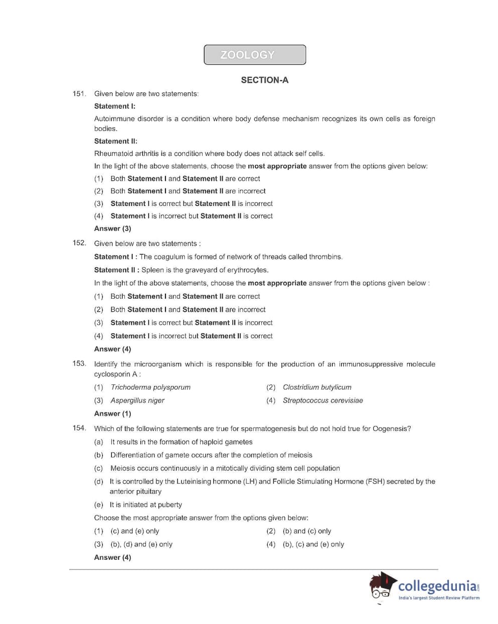 NEET 2022 Q4 Question paper with answer key pdf is available for download. NEET 2022 Q4 question paper was conducted by NTA on July 17, 2022, in pen-paper mode. In terms of difficulty level, NEET 2022 paper Q4 has been rated easy to moderate by the test-takers. NEET 2022 question paper code Q4 comprised a total of 200 MCQs out of which 180 had to be attempted in 200 minutes. Each of the 4 subjects (Zoology, Botany, Chemistry, Physics) in NEET Q4 question paper 2022 had 50 MCQs (45 to be attempted).