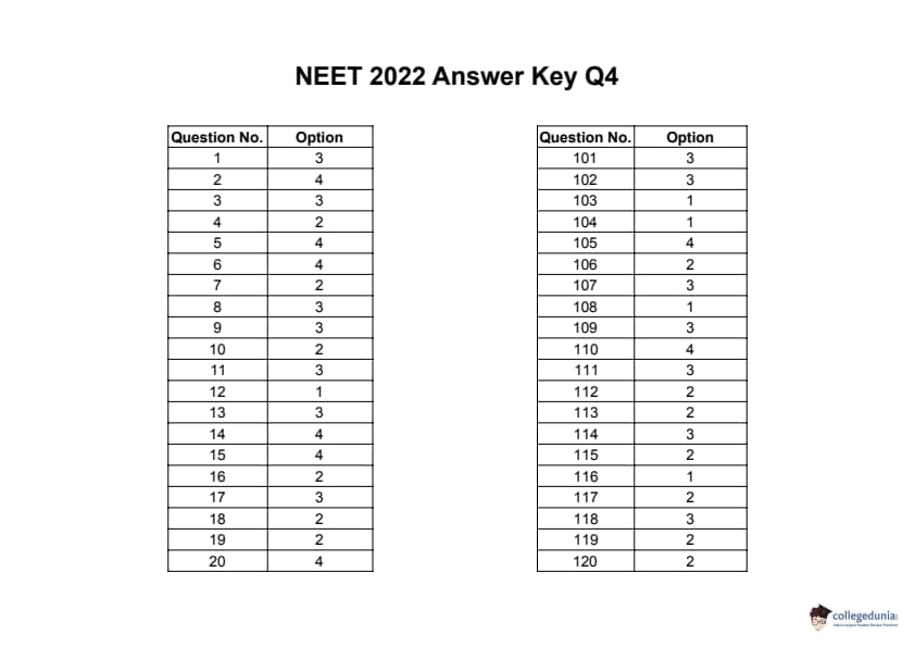| NEET 2022 Question Paper Q4 PDF | NEET 2022 Answer Key Q4 PDF |