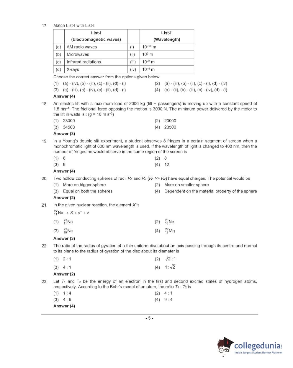 NEET 2022 Question Paper Q5 PDF NEET 2022 Answer Key Q5 PDF