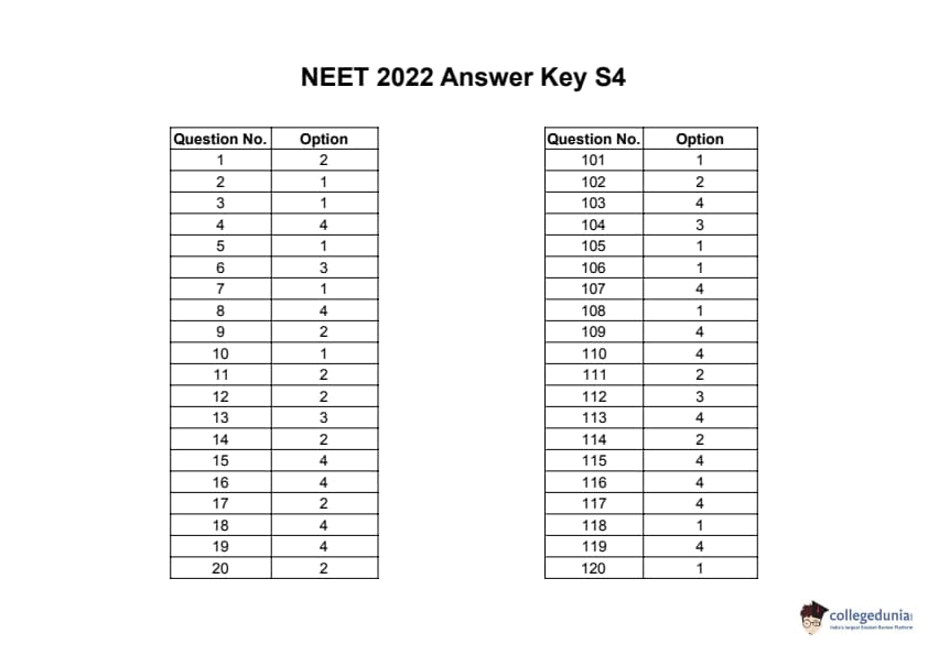 | NEET 2022 Question Paper S4 PDF | NEET 2022 Answer Key S4 PDF |