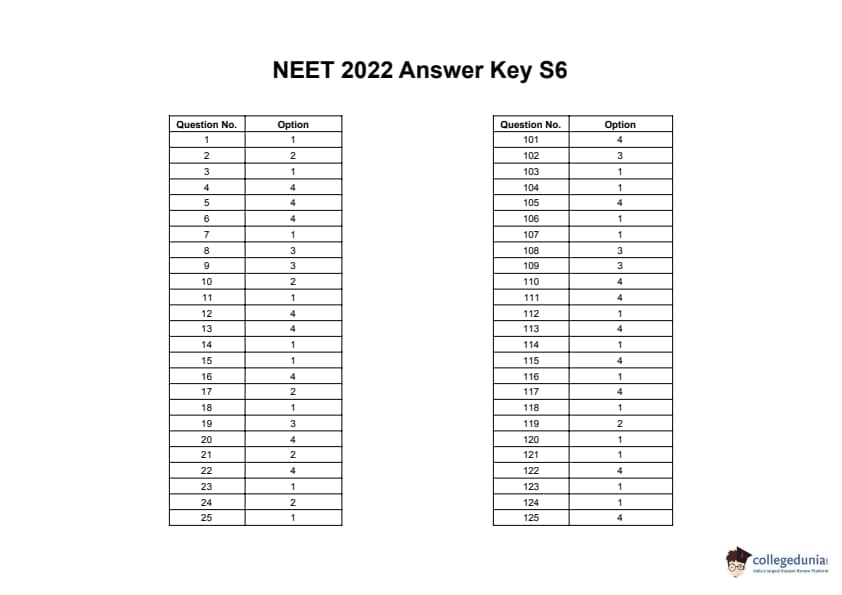 NEET 2022 Question Paper S6 PDF NEET 2022 Answer Key S6 PDF