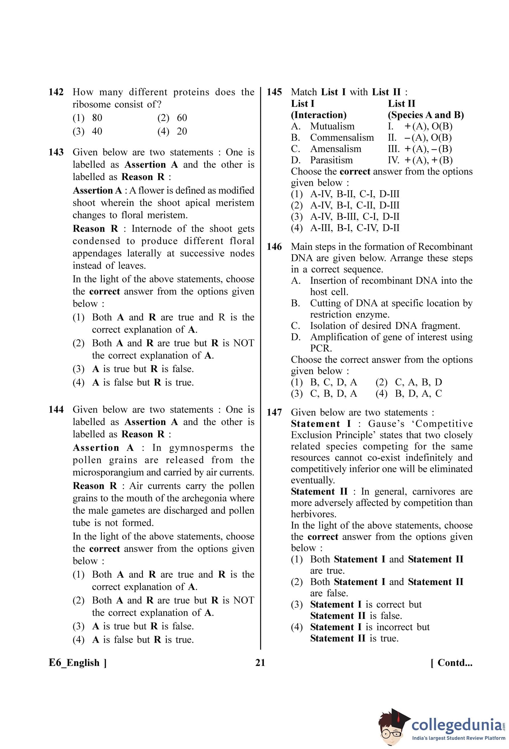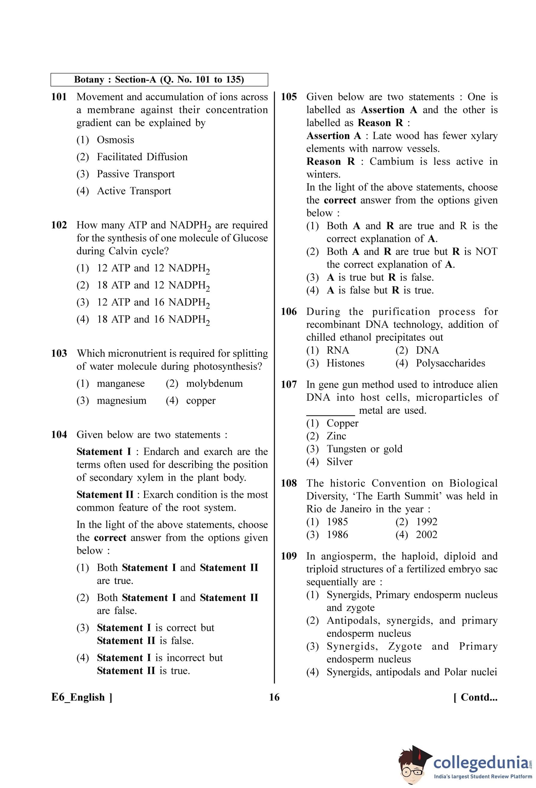 NEET 2023 Botany Question Paper with Solutions PDF E6 is available for download. NEET 2023 E6 Botany Question Paper comprises 50 MCQs out of which only 45 are to be attempted. NEET 2023 question E6 Botany is divided into 2 sections- A (35 questions) and B (15 questions).