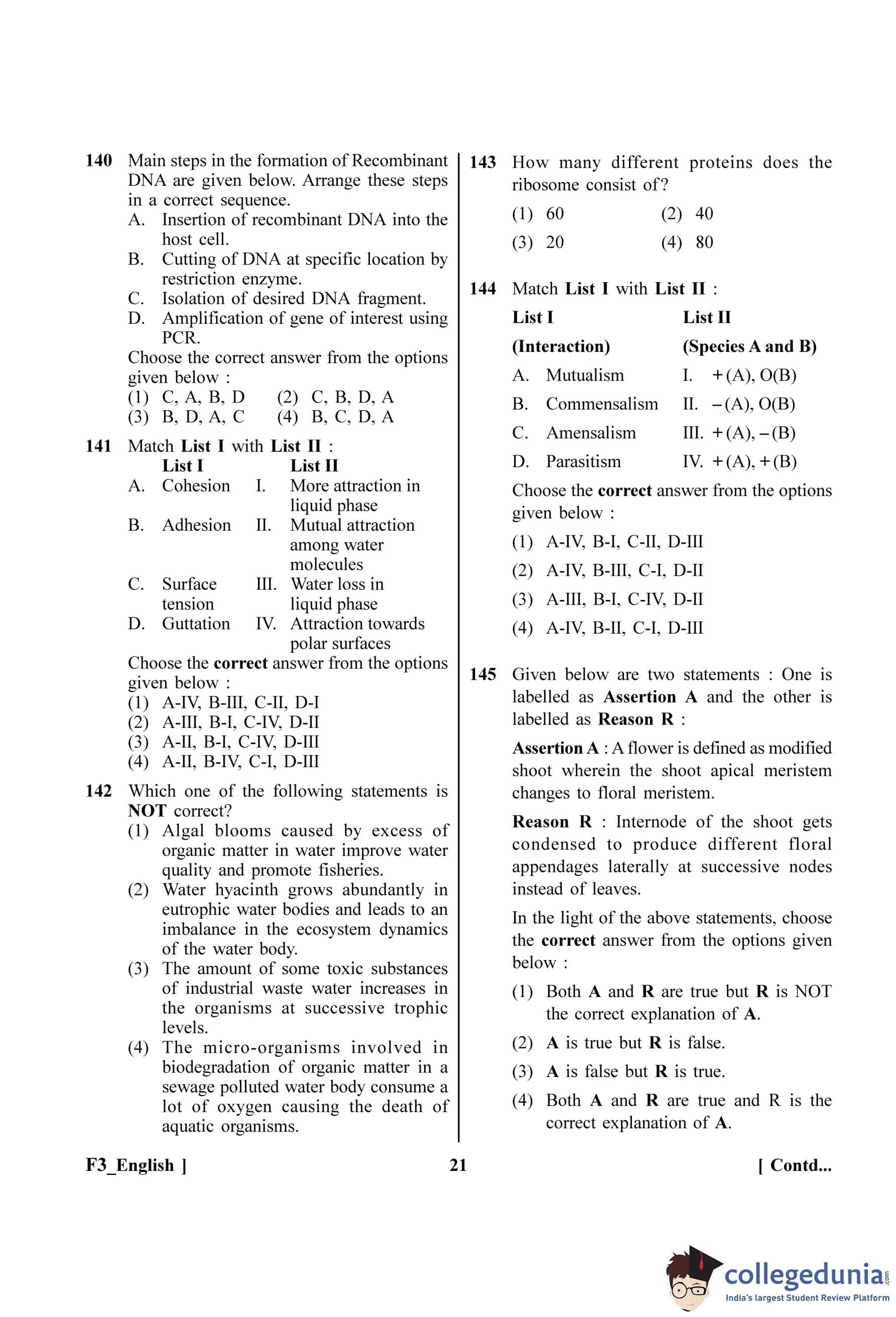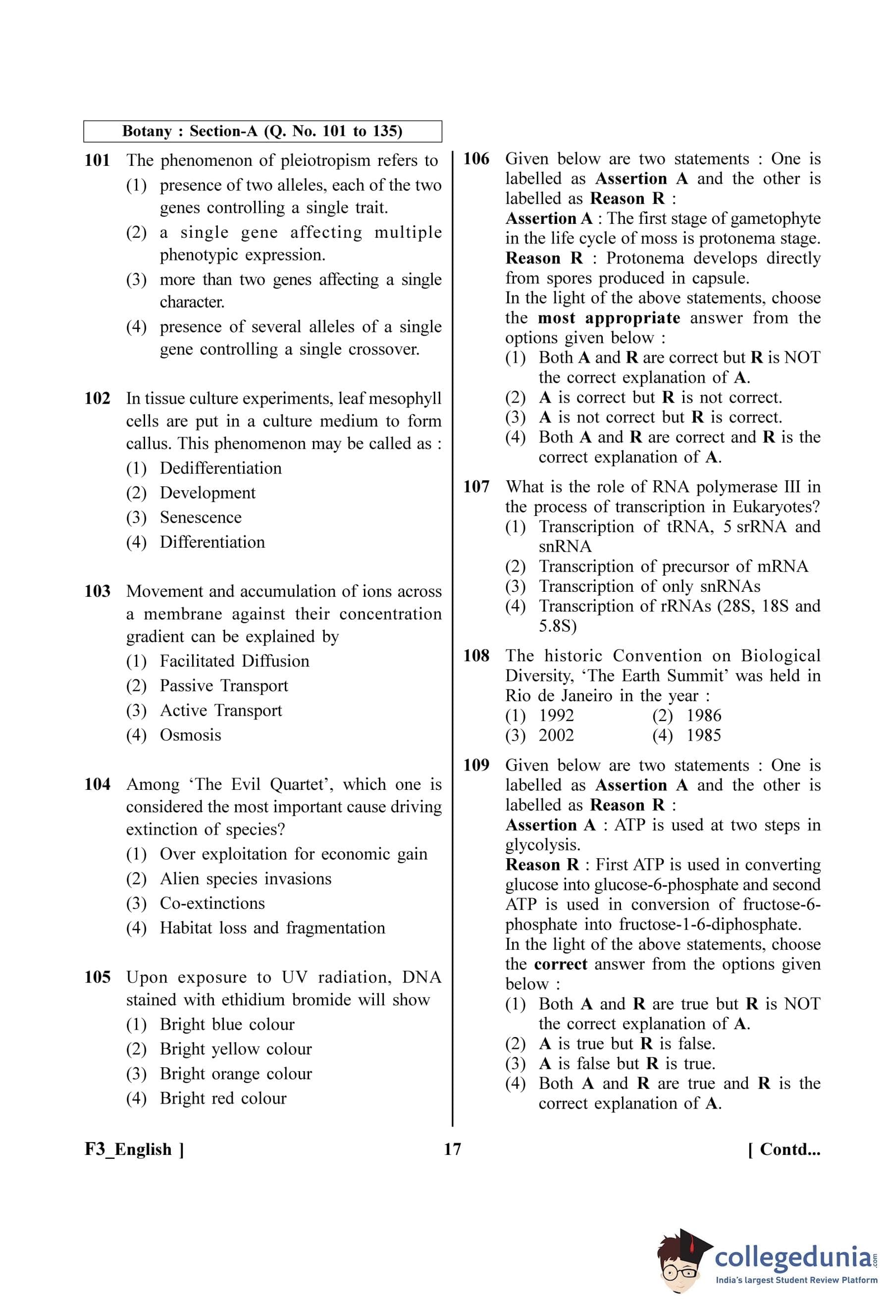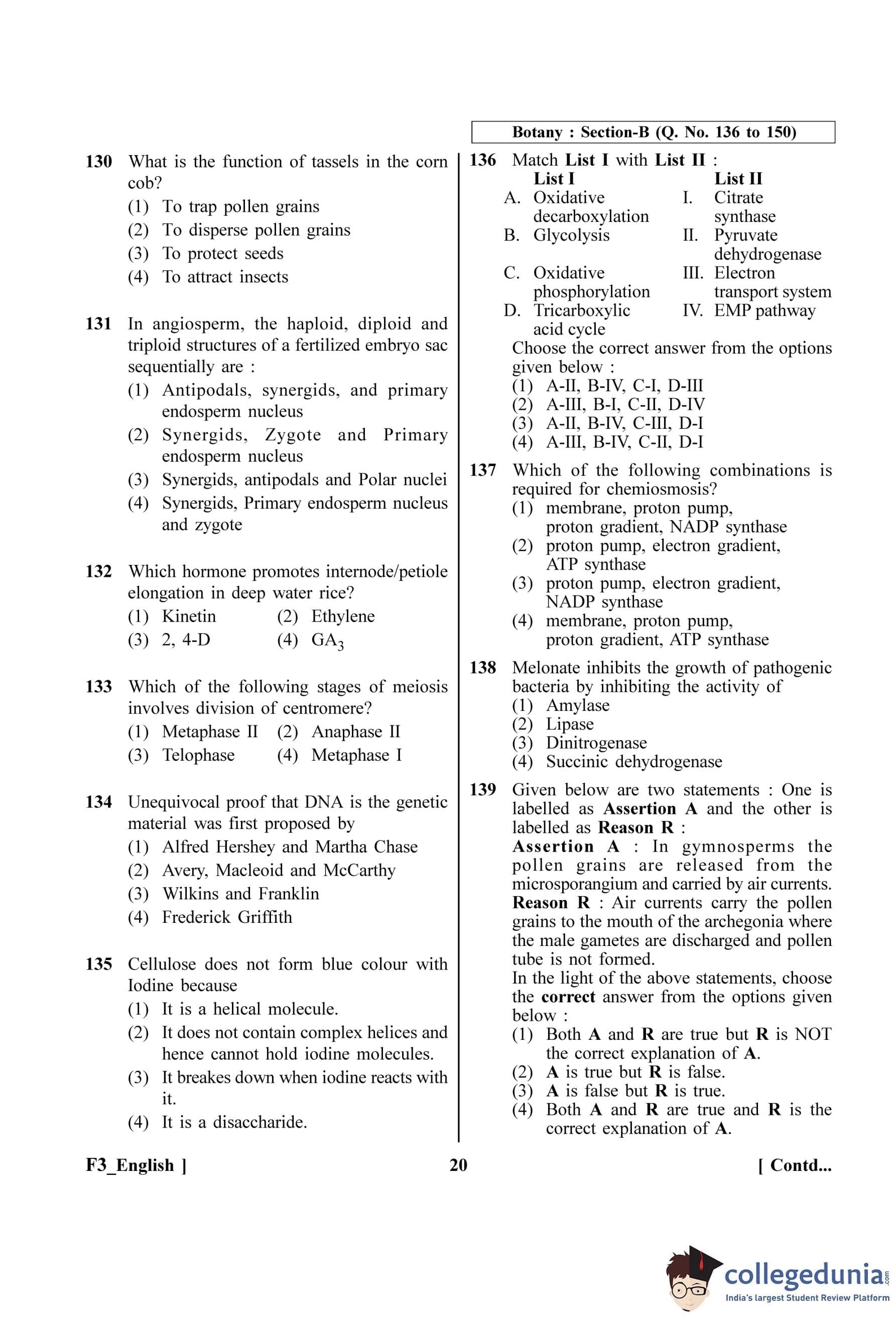 NEET 2023 Botany Question Paper with Solutions PDF F3 is available for download. NEET 2023 F3 Botany Question Paper comprises 50 MCQs out of which only 45 are to be attempted. NEET 2023 question F3 Botany is divided into 2 sections- A (35 questions) and B (15 questions).