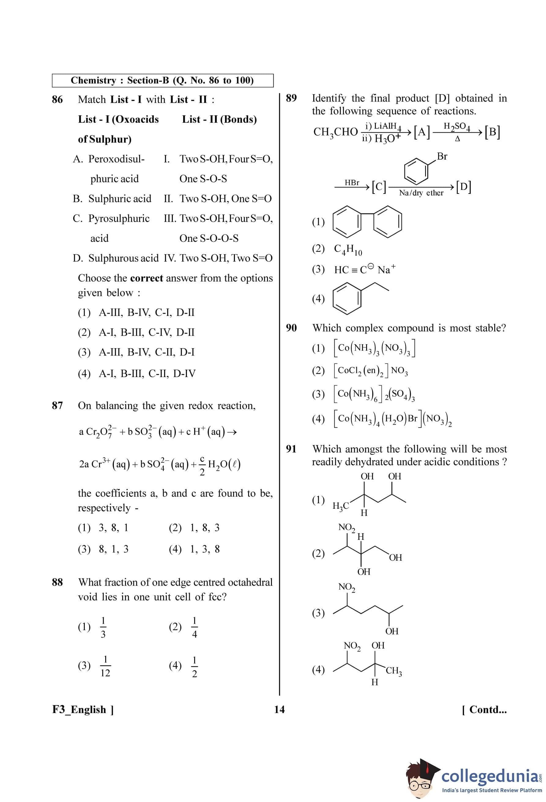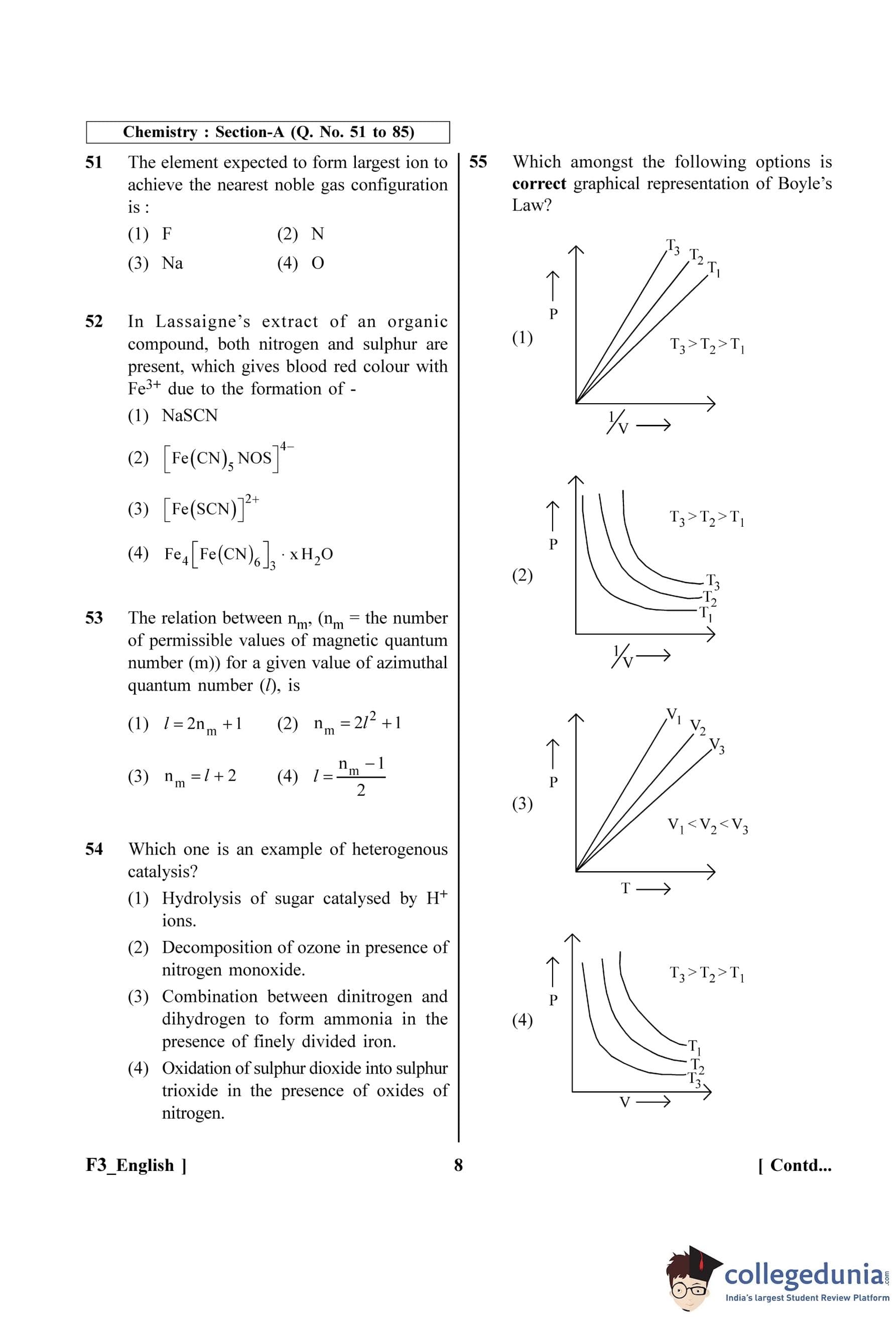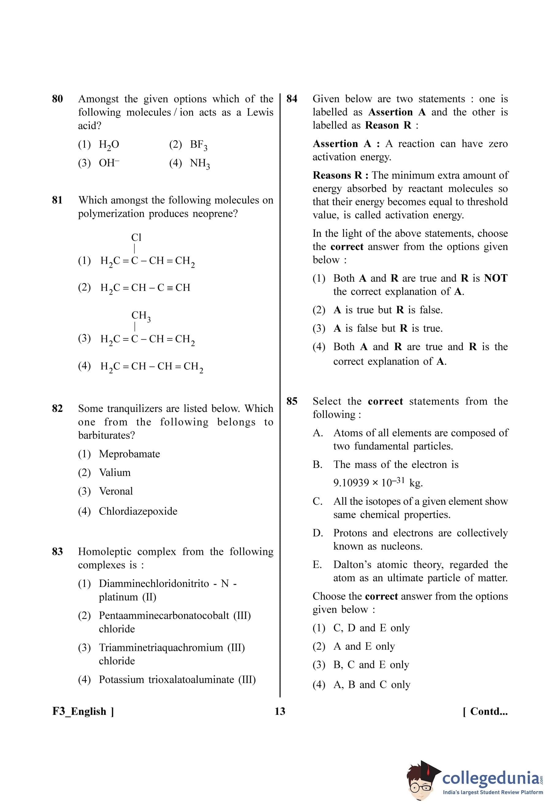 NEET 2023 Chemistry Question Paper with Solutions PDF F3 is available for download. NEET 2023 F3 Chemistry Question Paper comprises 50 MCQs out of which only 45 are to be attempted. NEET 2023 question F3 Chemistry is divided into 2 sections- A (35 questions) and B (15 questions).