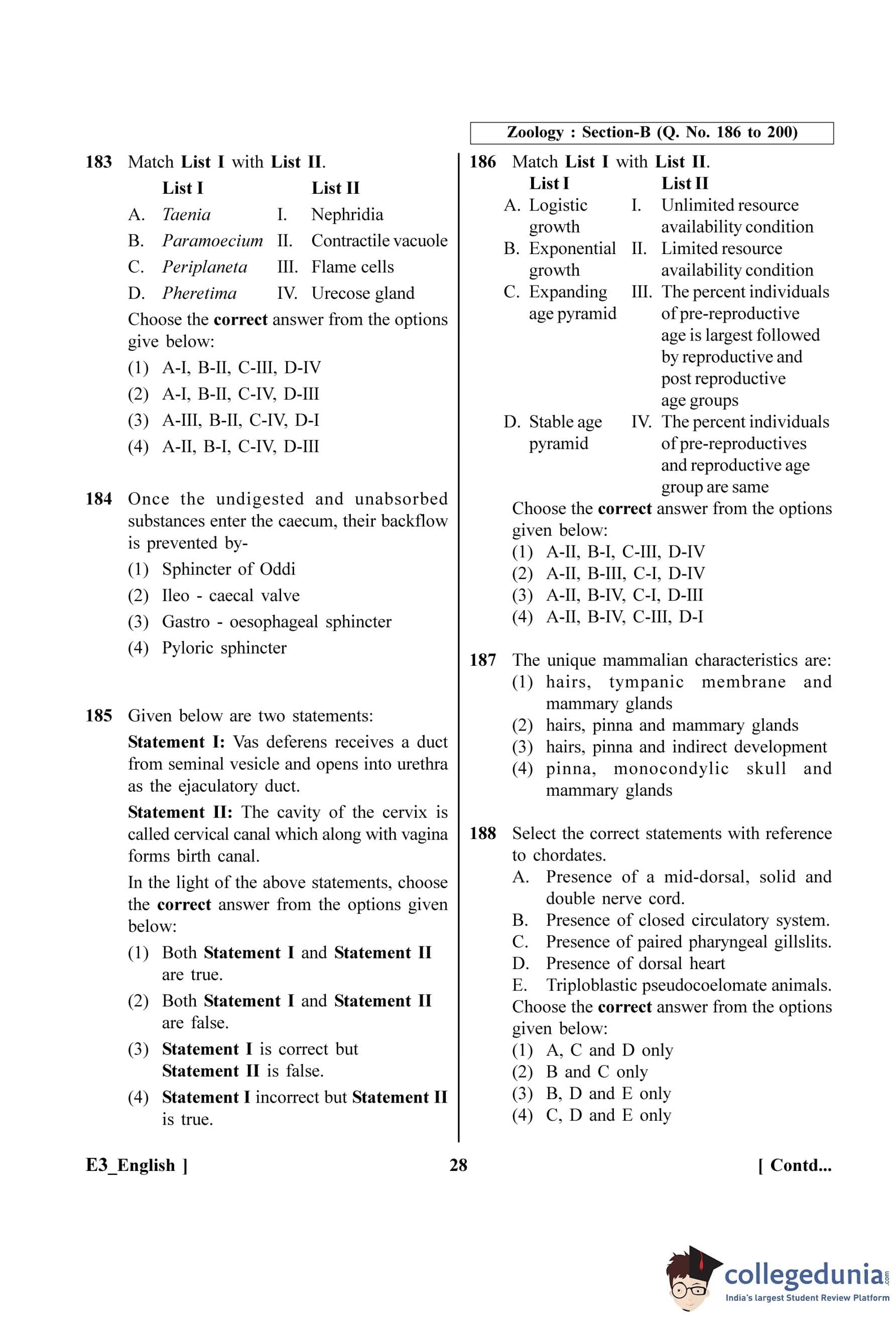 NEET 2023 Question paper with answer key pdf E3 is available for download. NEET 2023 E3 question paper was conducted by the NTA on May 7, 2023, in pen-paper mode. NEET 2023 question paper code E3 consists of 200 MCQs- 180 to be attempted in 200 minutes. Each of the 4 subjects (Zoology, Botany, Chemistry, Physics) in NEET E3 question paper 2023 have 50 MCQs (45 to be attempted).