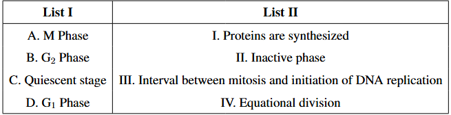 - Statement II is correct because the centrosome undergoes duplication during the S phase of interphase. Quick Tip: The G0 phase is a resting phase, where cells exit the active cell cycle but may still perform essential functions.