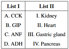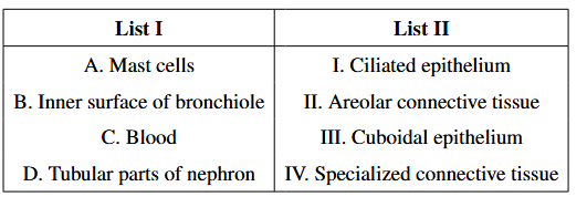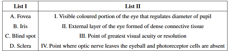Match List I with List II with respect to the human eye: