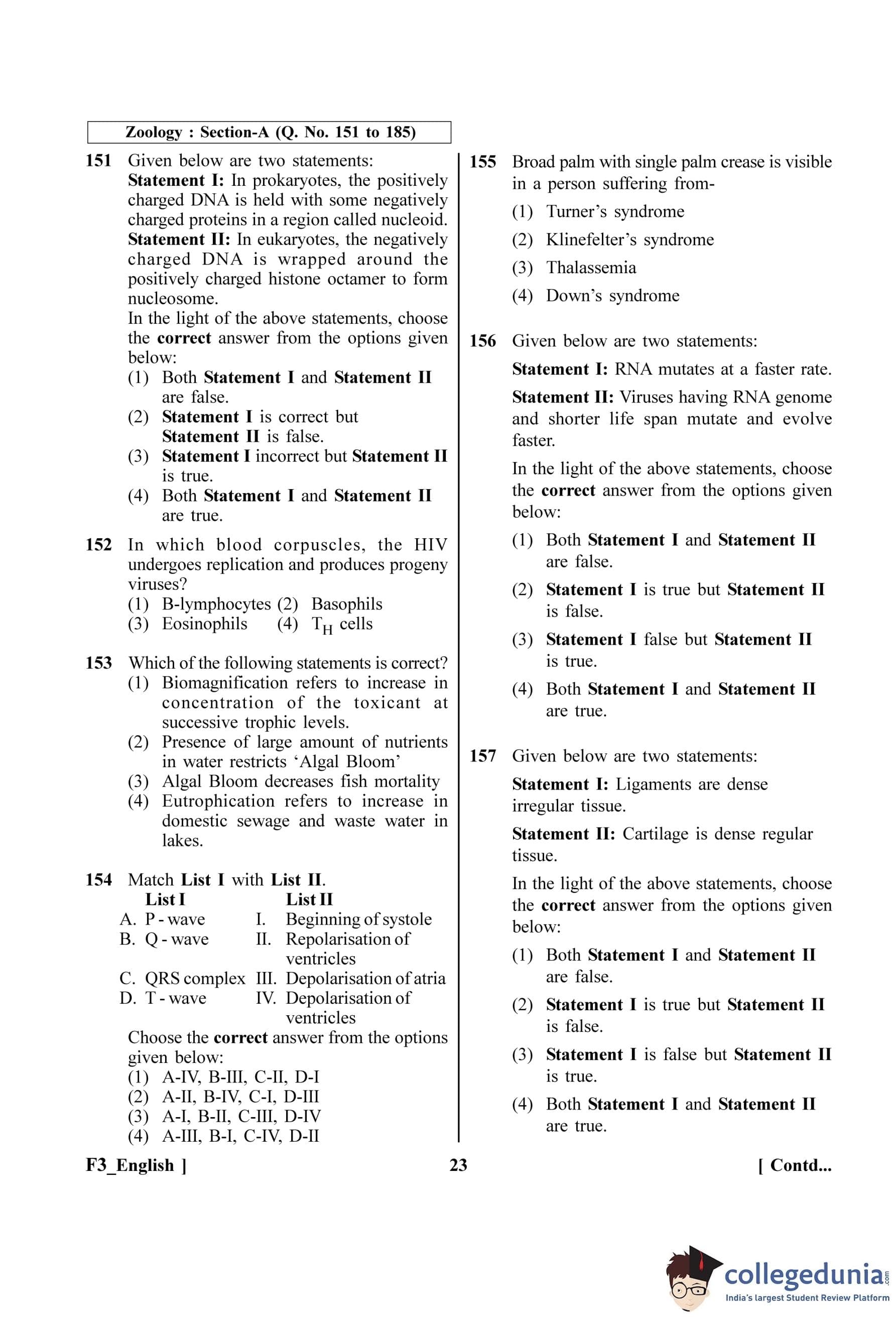 NEET 2023 Question paper with answer key pdf F3 is available for download. NEET 2023 F3 question paper was conducted by the NTA on May 7, 2023, in pen-paper mode. NEET 2023 question paper code F3 consists of 200 MCQs- 180 to be attempted in 200 minutes. Each of the 4 subjects (Zoology, Botany, Chemistry, Physics) in NEET F3 question paper 2023 have 50 MCQs (45 to be attempted). Check NEET Cutoff