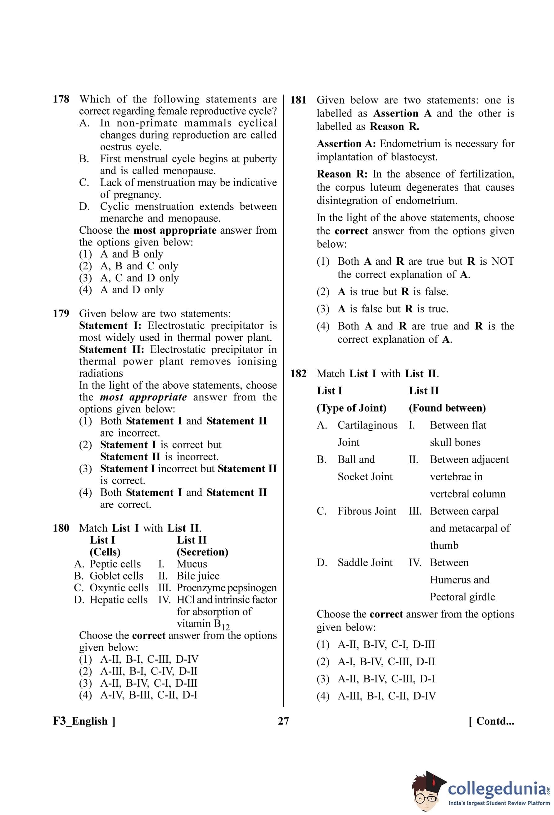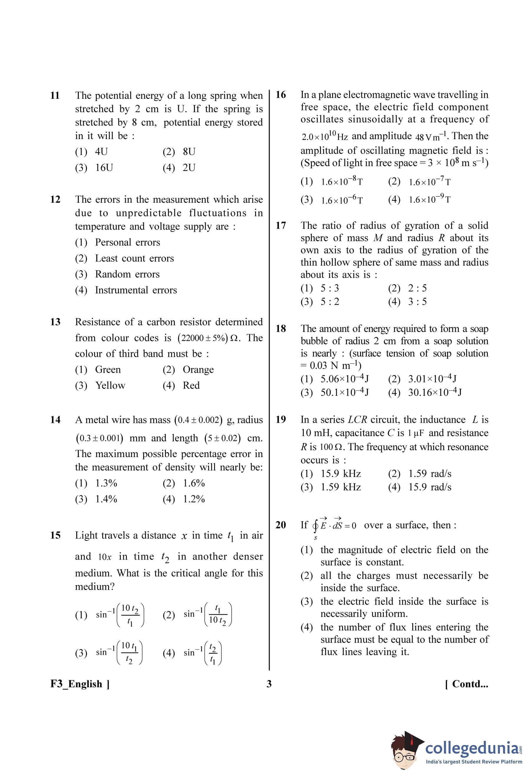 | NEET 2023 F3 Question Paper with Answer Key | Check Solution |