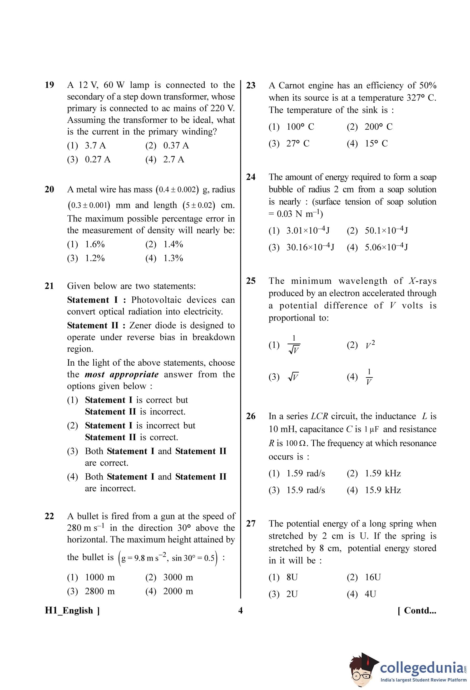 NEET 2023 Question Paper with Answer Key PDF H1 in English