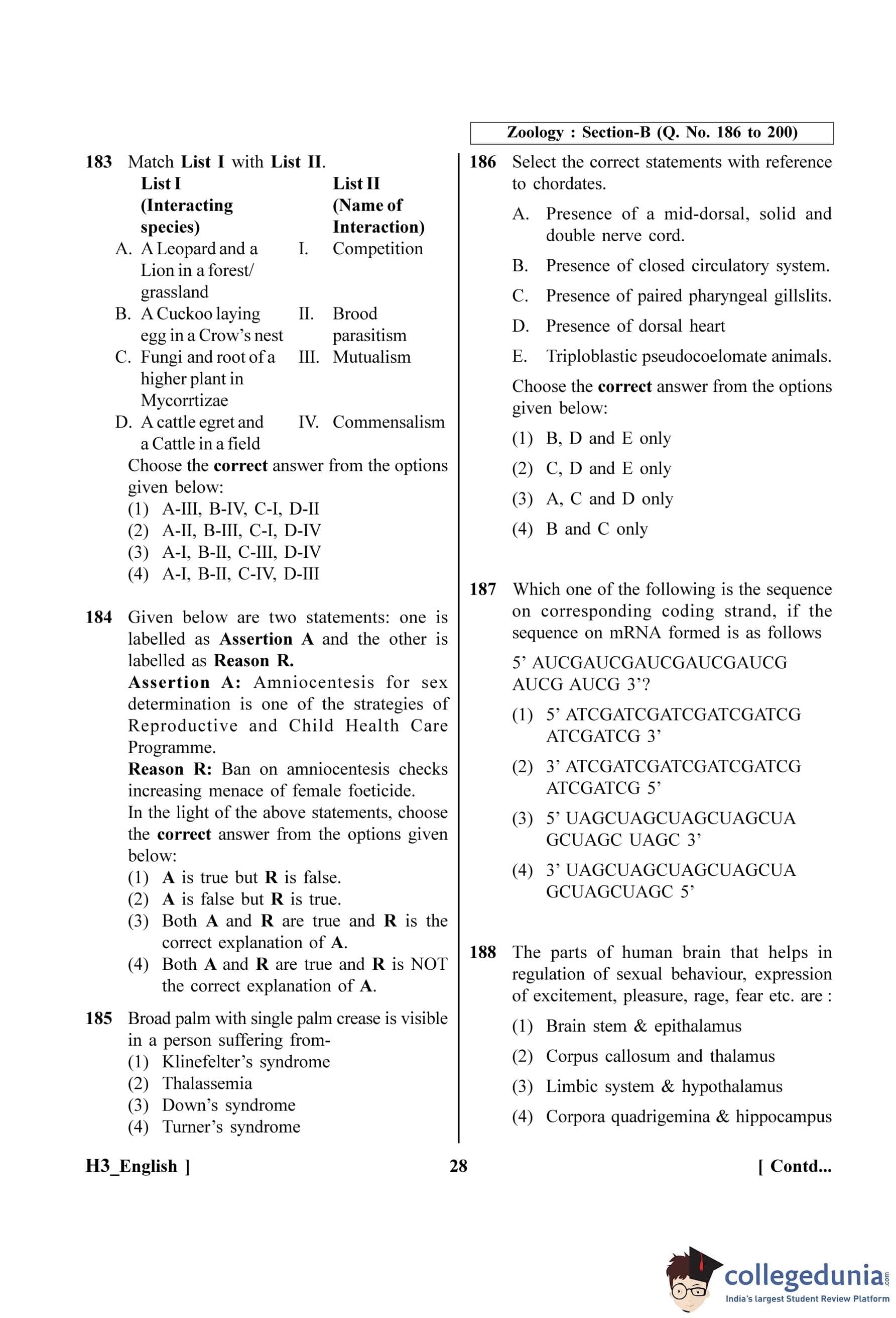 NEET 2023 Question paper with answer key pdf H3 is available for download. NEET 2023 H3 question paper has been conducted by the NTA on May 7, 2023, in pen-paper mode. NEET 2023 question paper code H3 consists of 200 MCQs- 180 to be attempted in 200 minutes. Each of the 4 subjects (Zoology, Botany, Chemistry, Physics) in NEET H3 question paper 2023 have 50 MCQs (45 to be attempted).