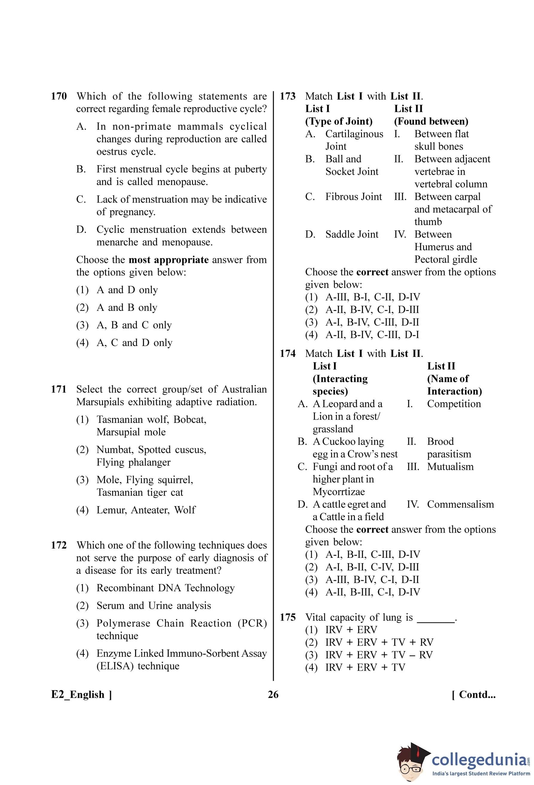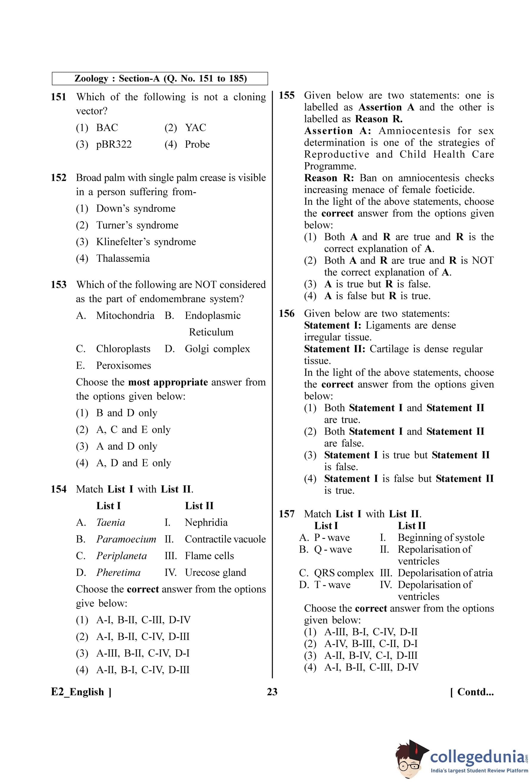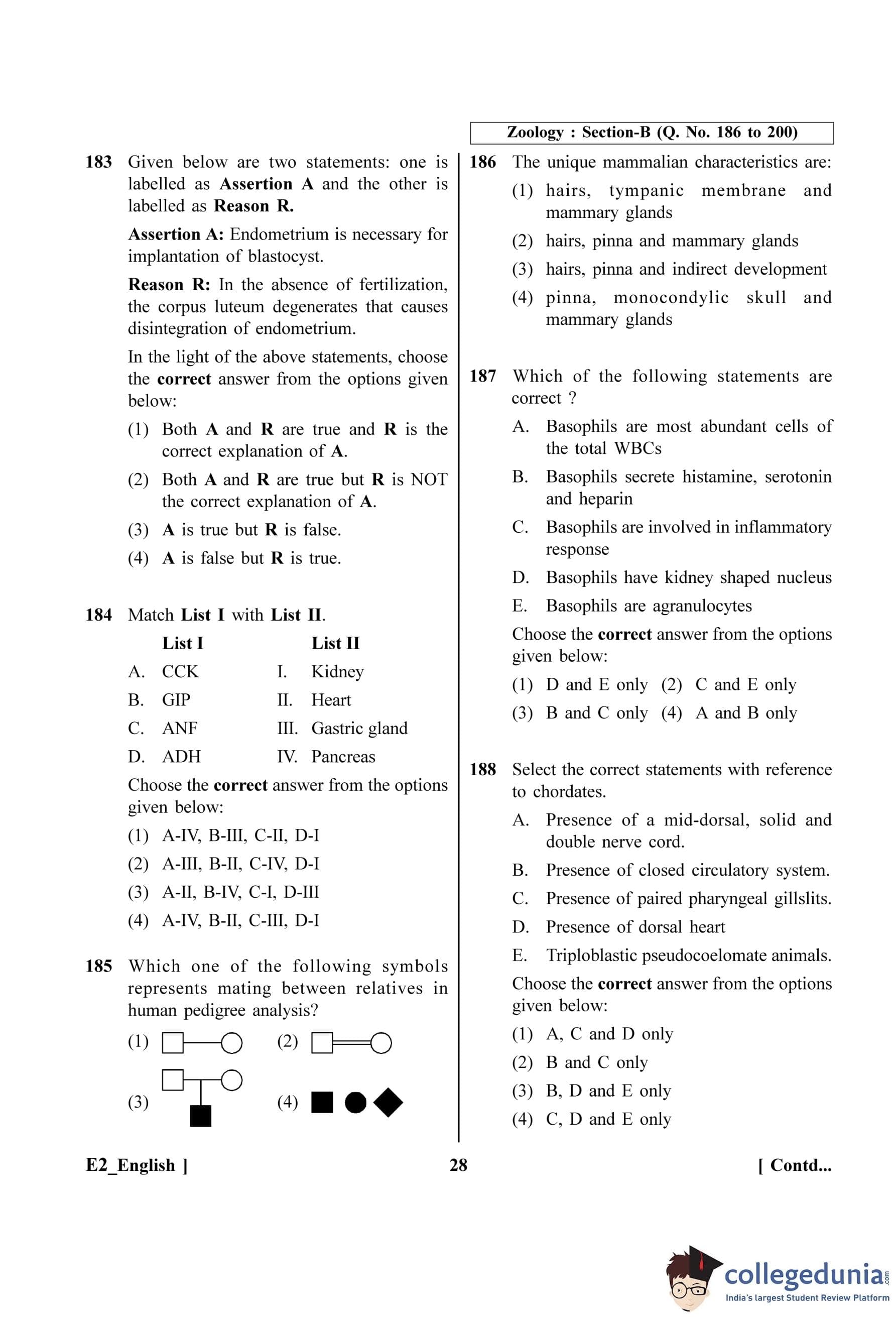 | NEET 2023 Zoology E2 Question Paper with Answer Key PDF | Download PDF | Check Solutions |