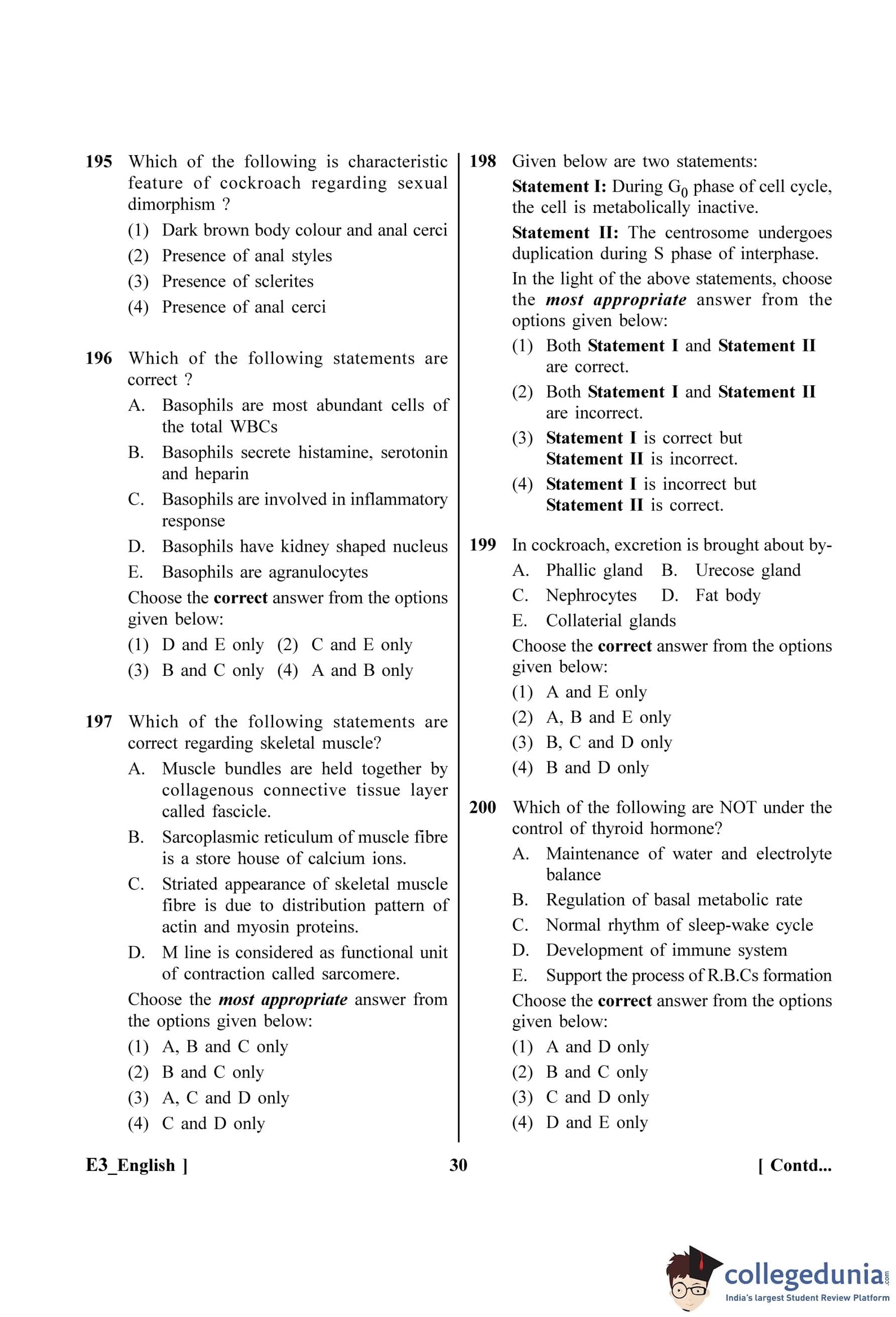 | NEET 2023 Zoology E3 Question Paper with Answer Key PDF | Download PDF | Check Solutions |