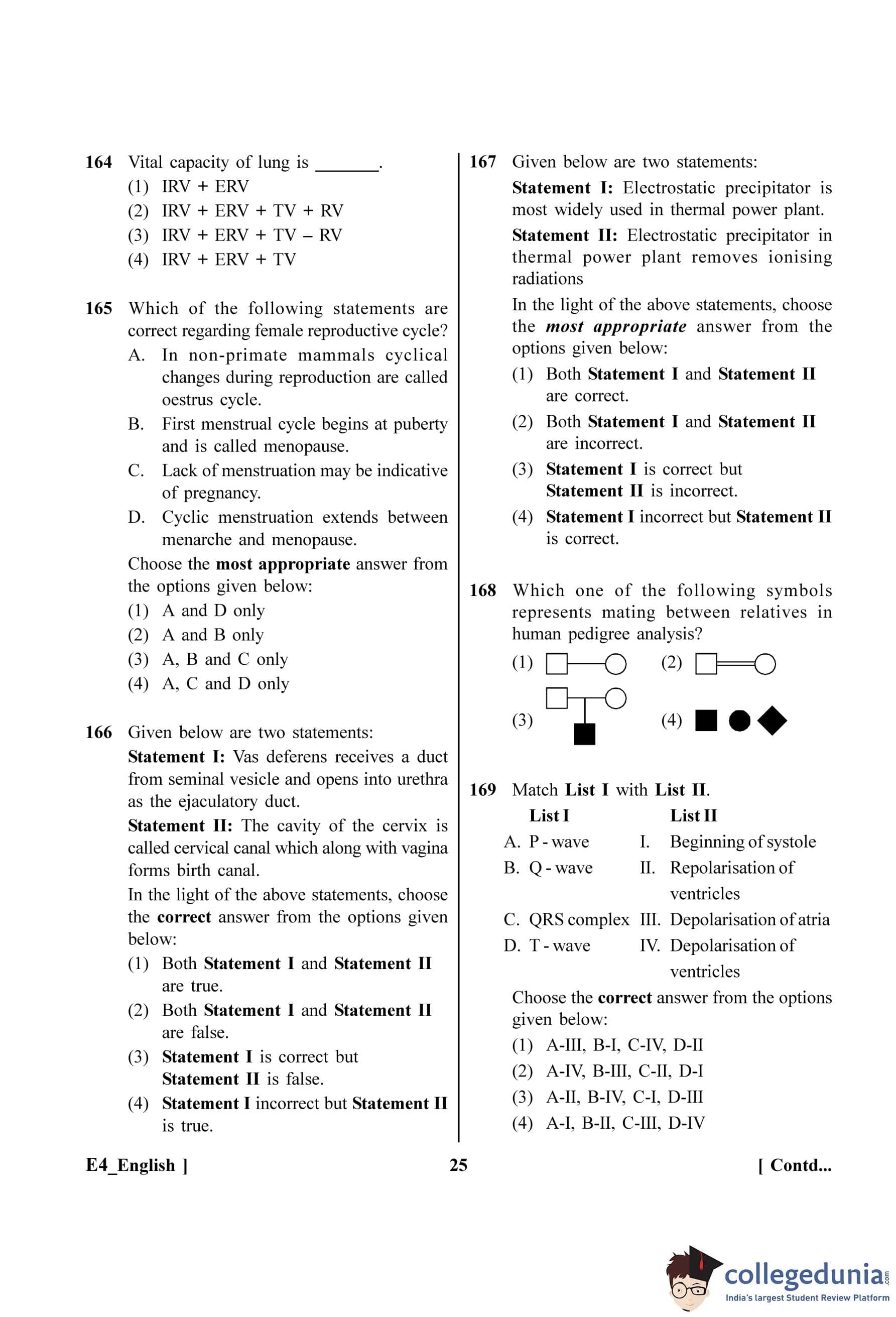 NEET 2023 Zoology Question Paper with Solutions PDF E4 is available for download. NEET 2023 E4 Zoology Question Paper comprises 50 MCQs out of which only 45 are to be attempted. NEET 2023 question E4 Zoology is divided into 2 sections- A (35 questions) and B (15 questions).