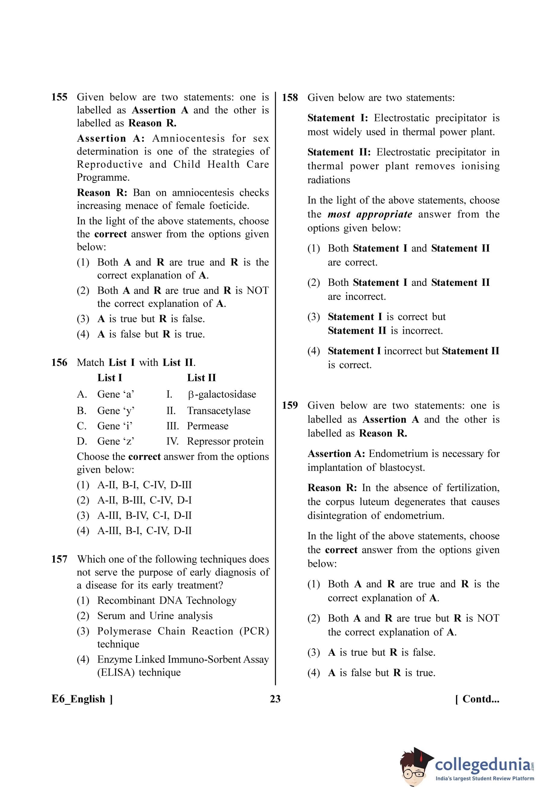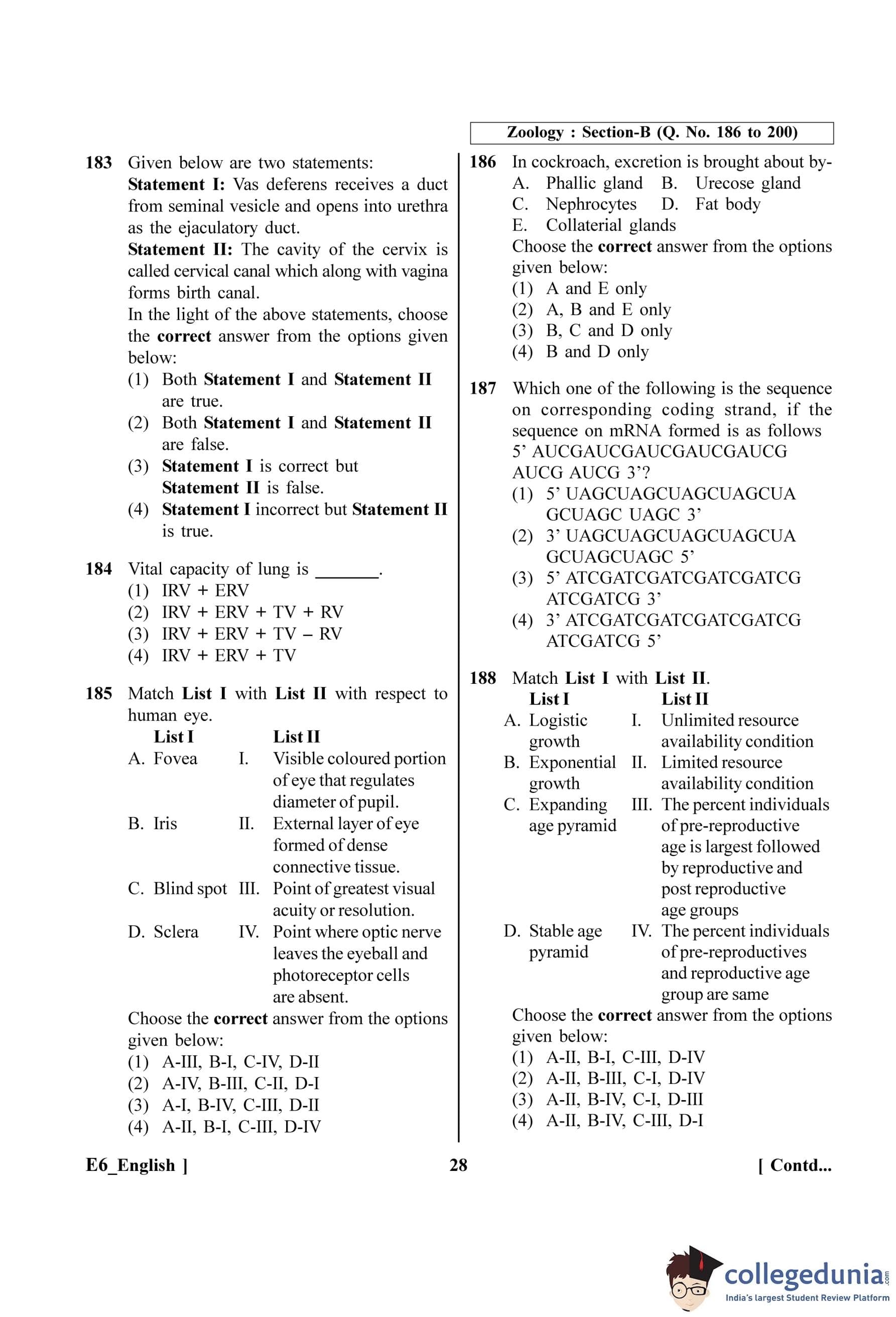 | NEET 2023 Zoology E6 Question Paper with Answer Key PDF | Download PDF | Check Solutions |