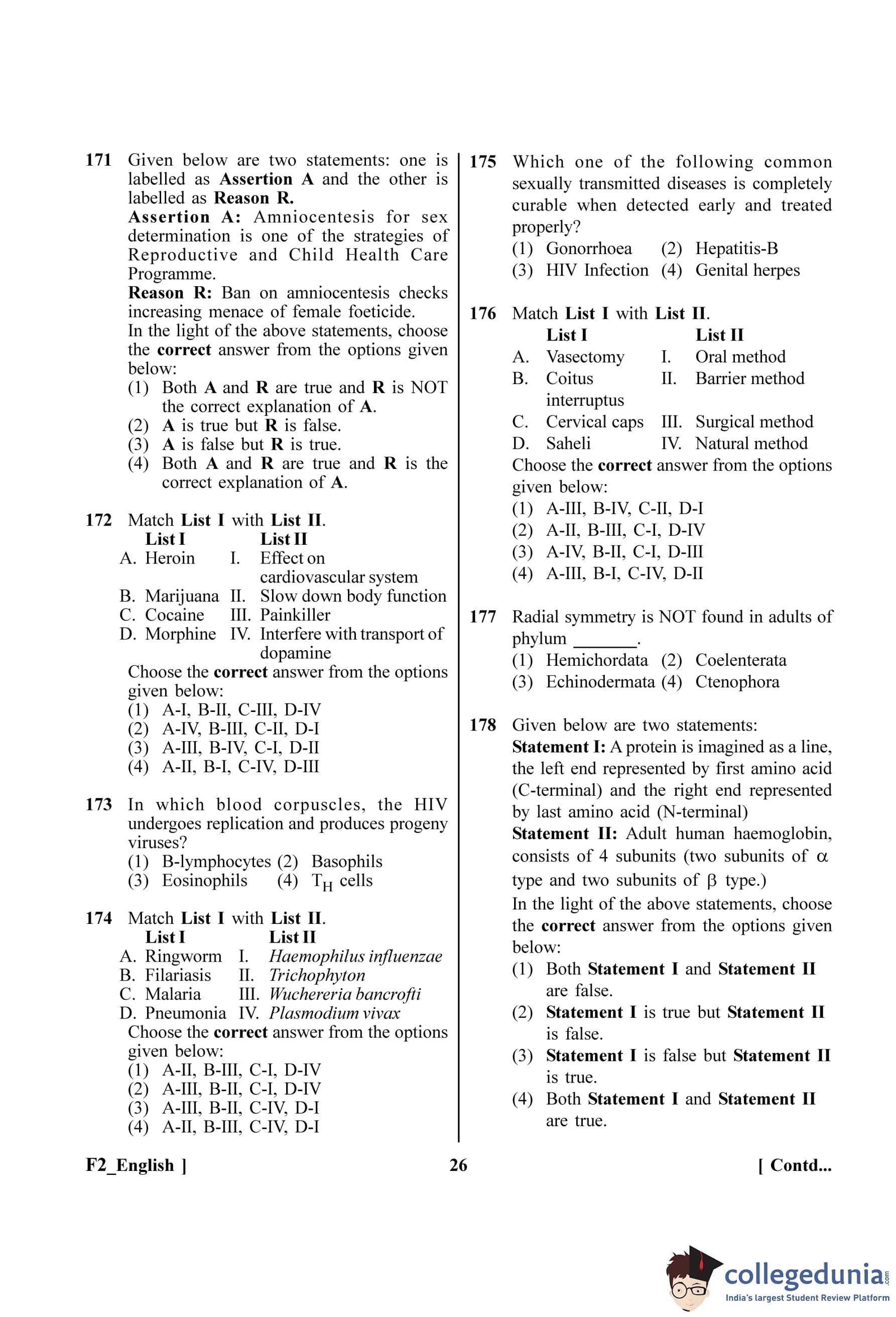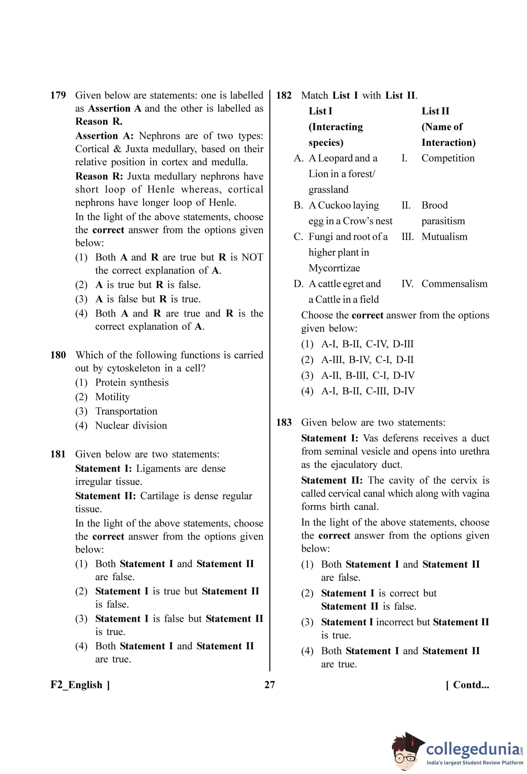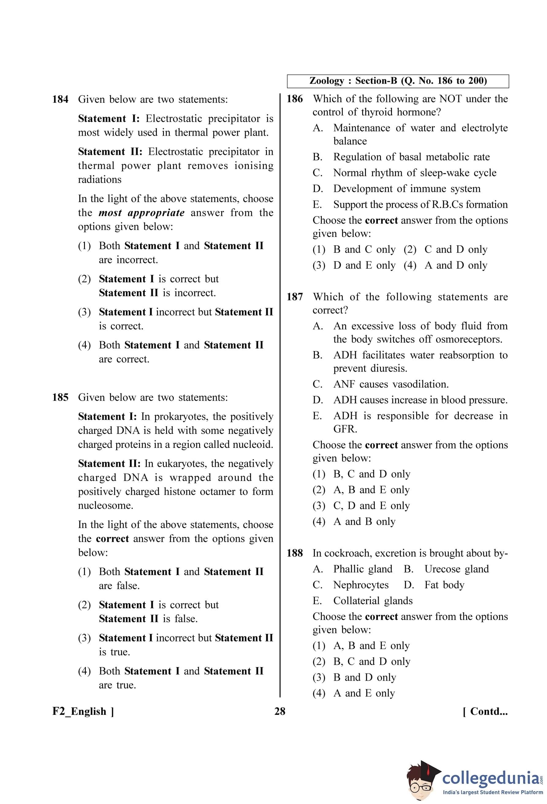 | NEET 2023 Zoology F2 Question Paper with Solutions PDF | Download PDF | Check Solutions |