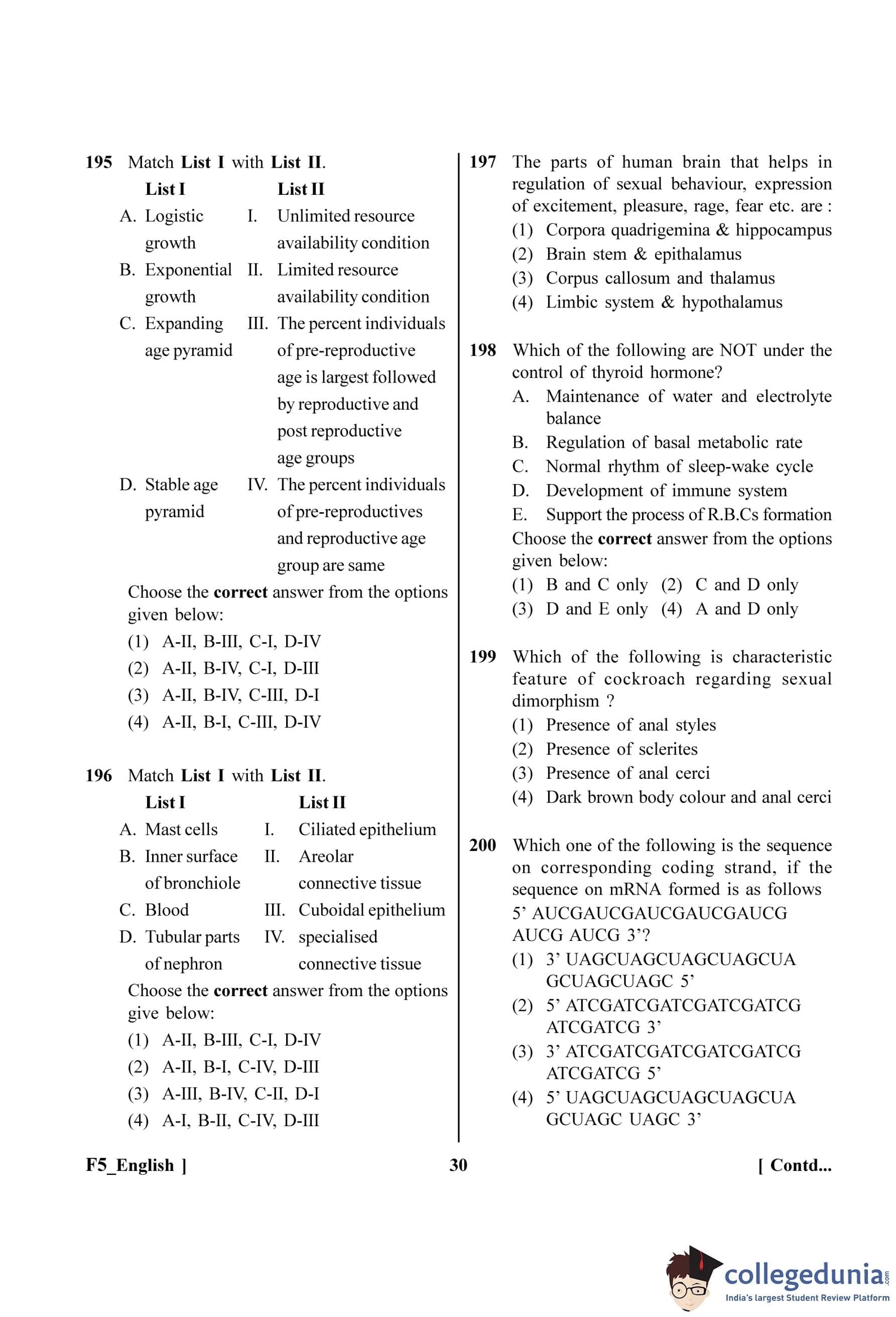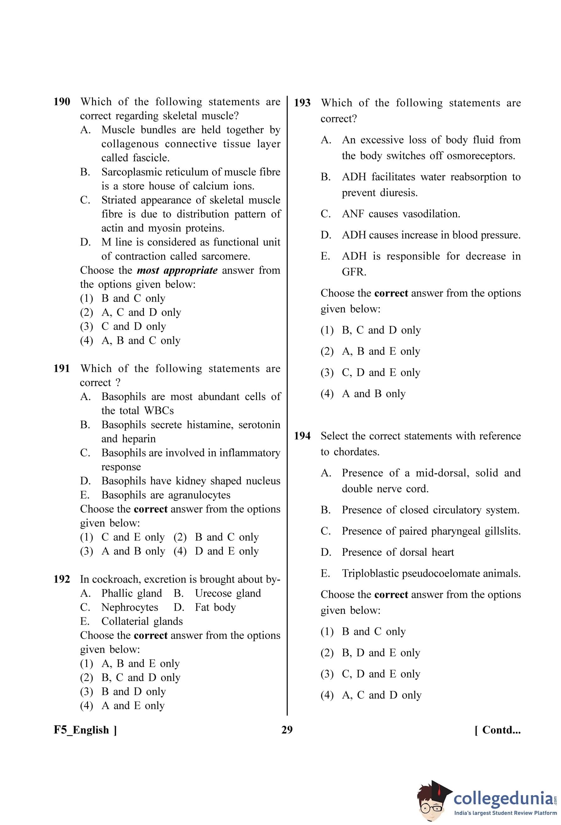 NEET 2023 Zoology Question Paper with Solutions PDF F5 is available for download. NEET 2023 F5 Zoology Question Paper comprises 50 MCQs out of which only 45 are to be attempted. NEET 2023 question F5 Zoology is divided into 2 sections- A (35 questions) and B (15 questions).